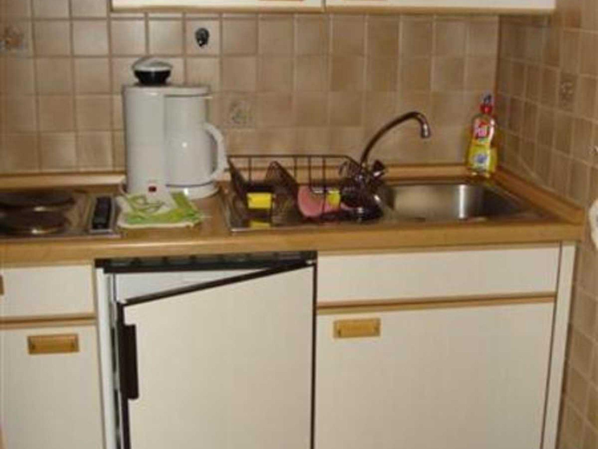Die Wohnung hat 45 qm Wohnfläche und liegt im Hochpaterre mit seitlichem Blick auf den Vorgarten, Im Schlafzimmer steht ein Doppelbett und im Wohnzimmer ist eine komplett eingerichtete Küche integriert und die Schlafcouch lässt sich zu einem Doppelbett ausziehen.