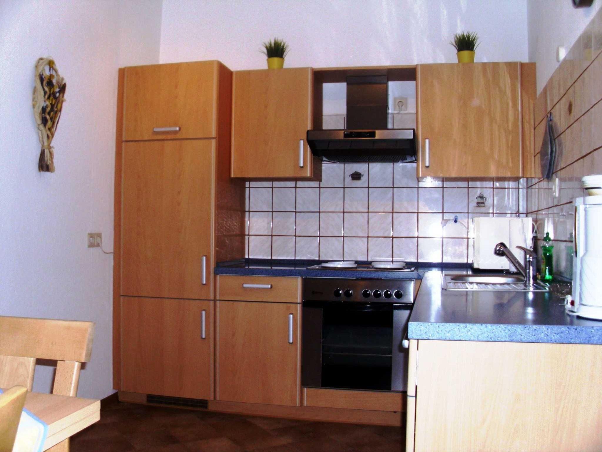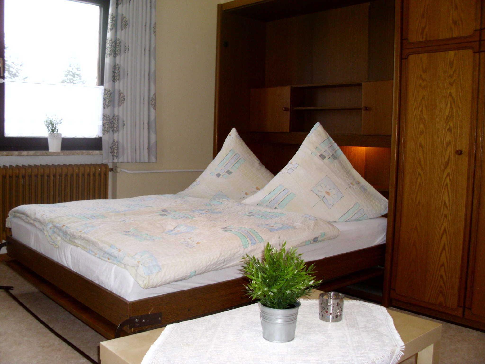 2-Raum Ferienwohnung im 1. OG, Schlafzimmer, Wohnzimmer mit Schrankbett, Küche, Bad/WC