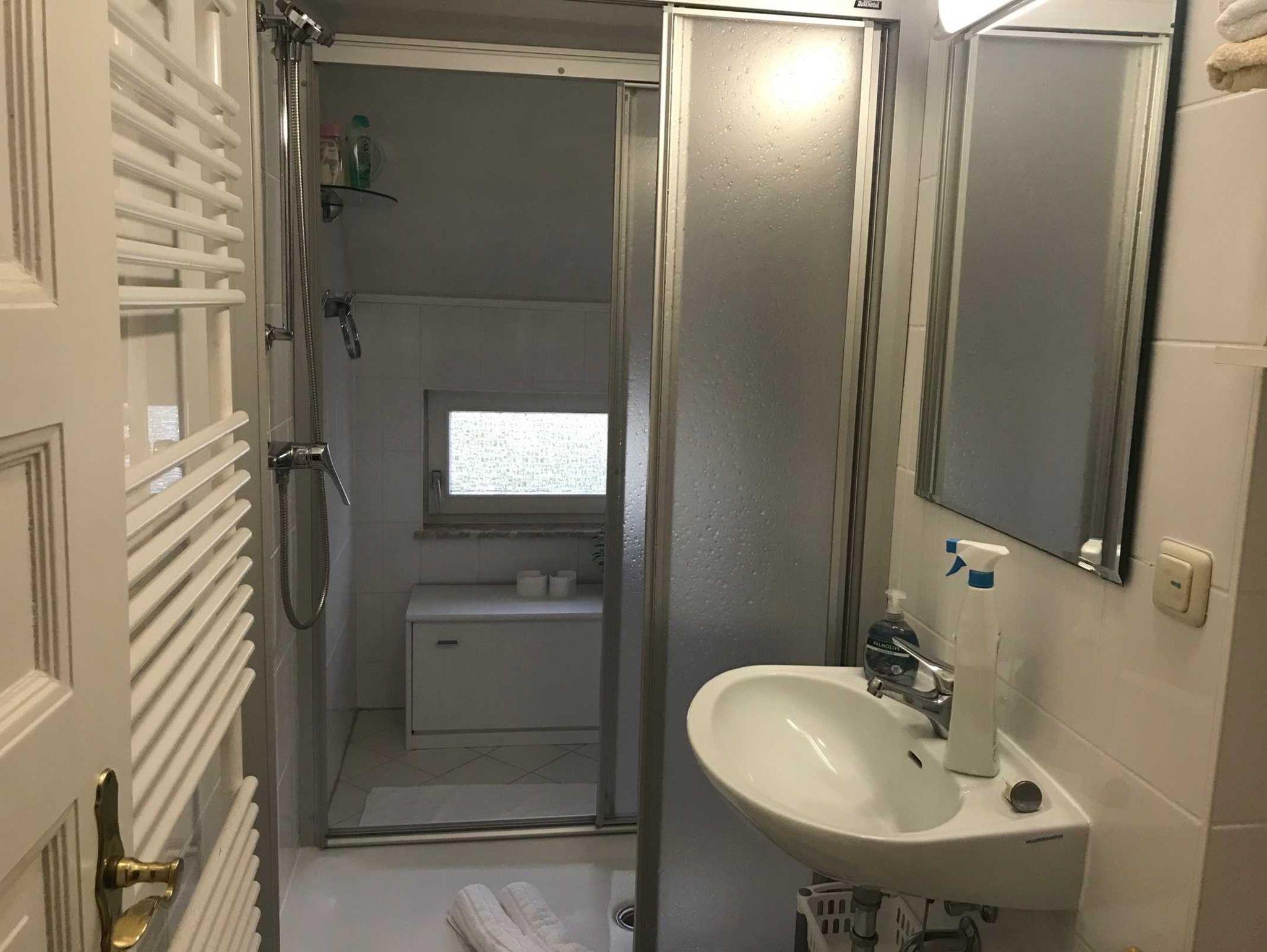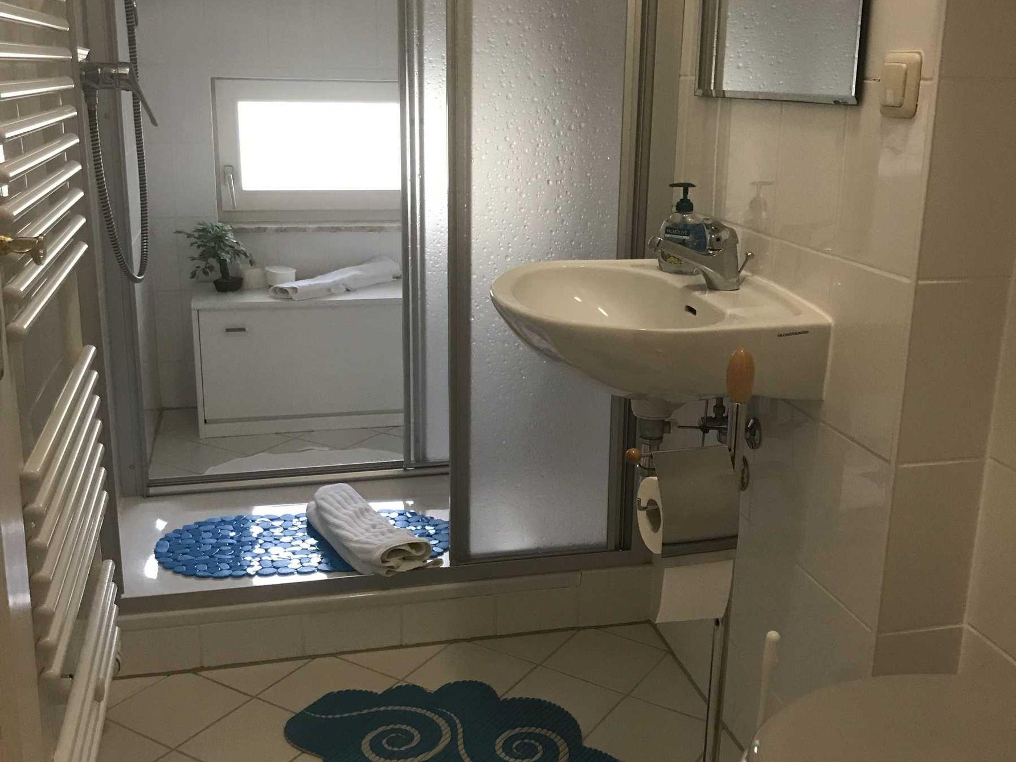 Das zweite Badezimmer verfügt über Dusche und WC. Die Badezimmer sind mit einer Grundausstattung an Hygieneartikeln versehen, ein Fön ist ebenfalls vorhanden.