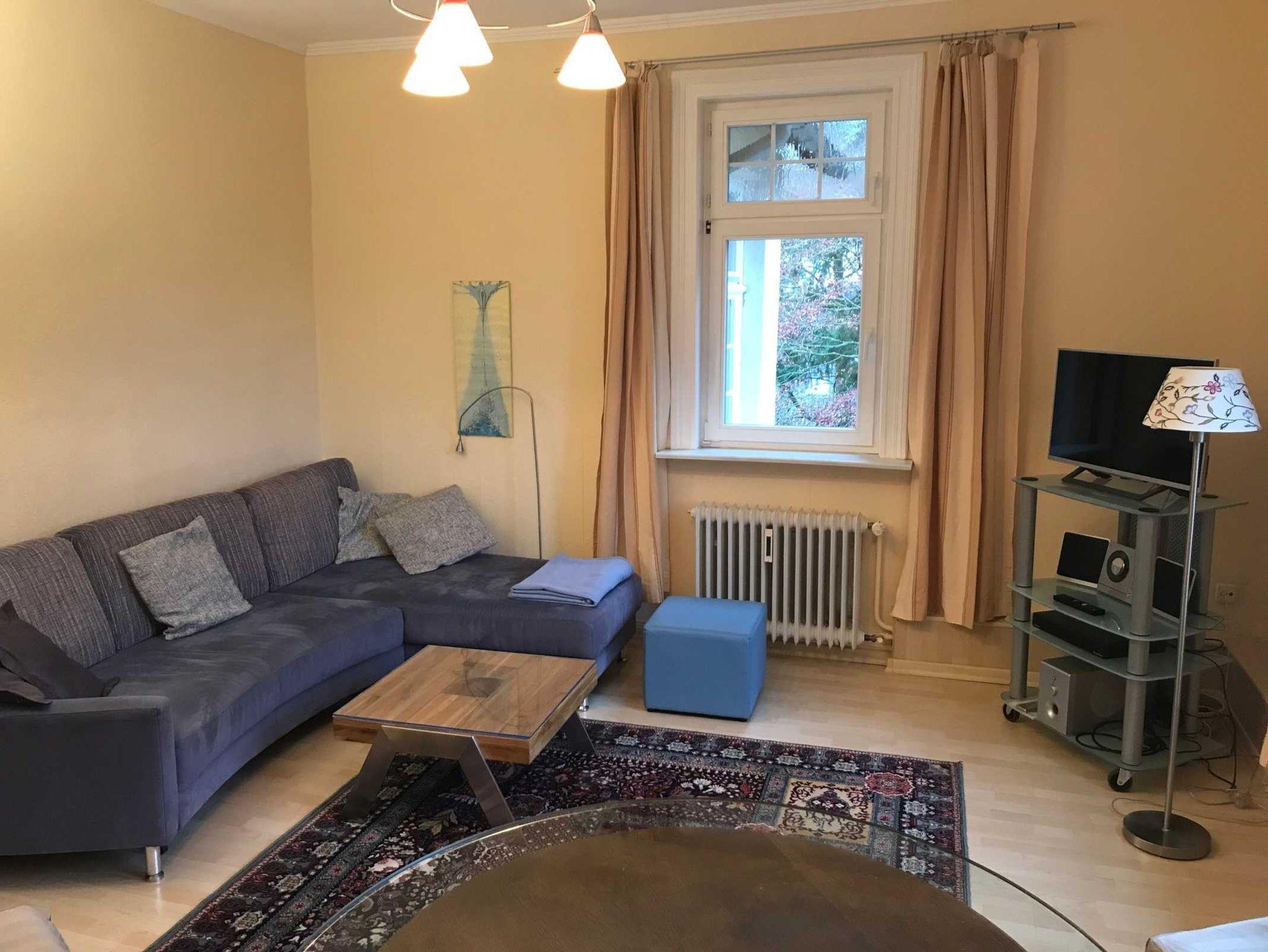 Im lichtdurchfluteten neu eingerichteten und renovierten Wohnzimmer mit TV und Stereoanlage lädt ein geräumiges Sofa zum Verweilen ein. Als Schlafsofa genutzt, könnten hier ebensogut 2 weitere Personen nächtigen.