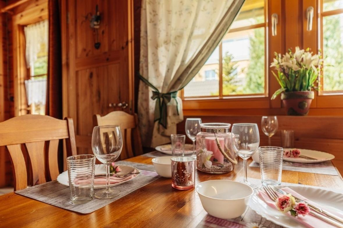 Die geräumige Wohnküche lädt auch nach dem Essen zum verweilen ein. Ausgestattet ist sie mit allem was man für einen entspannten Urlaub braucht: