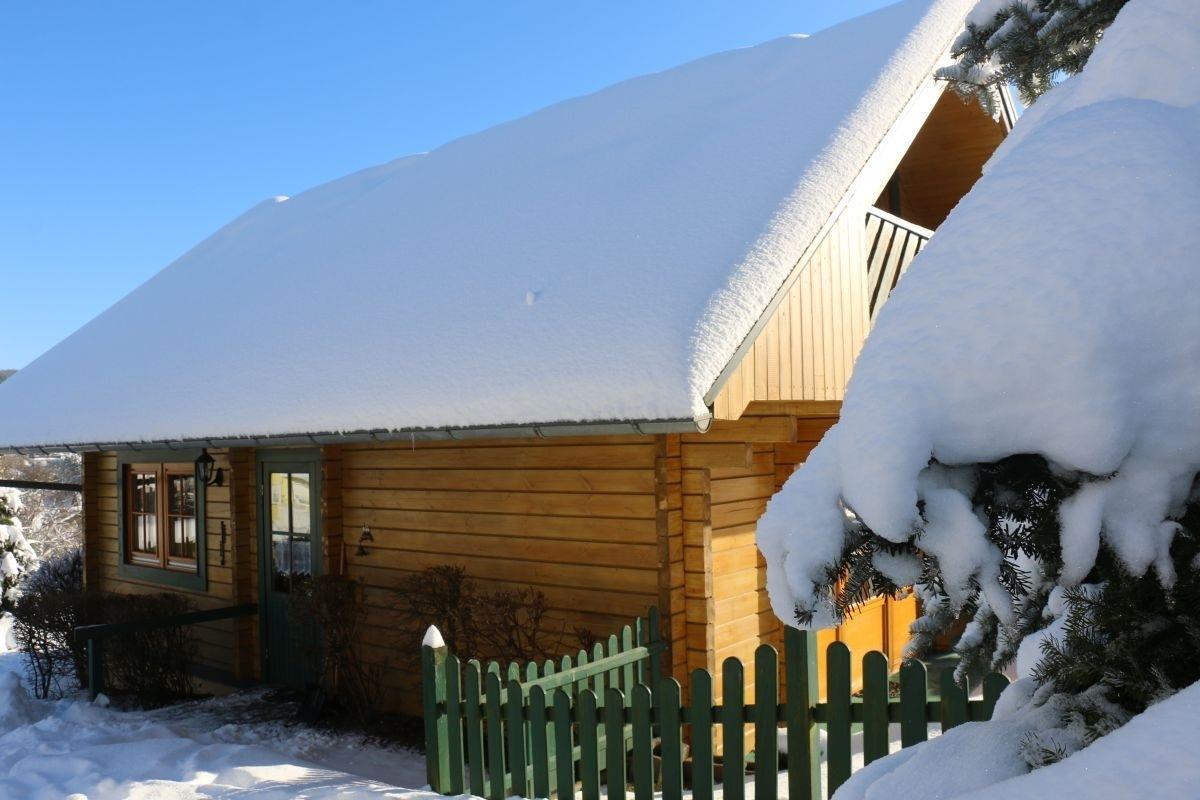 Das Blockhaus ist ca 80qm groß und erstreckt sich über 2 Etagen. Im Erdgeschoß befinden sich Küche, Bad und Wohnzimmer im Obergeschoß die Schlafräume. Das Ferienhaus ist für eine Belegung mit max. 6 Personen ausgestattet. Es verfügt über eine Terrasse, einen kleinen Garten und ist komplett eingezäunt. Das Holz ist naturbelassen.