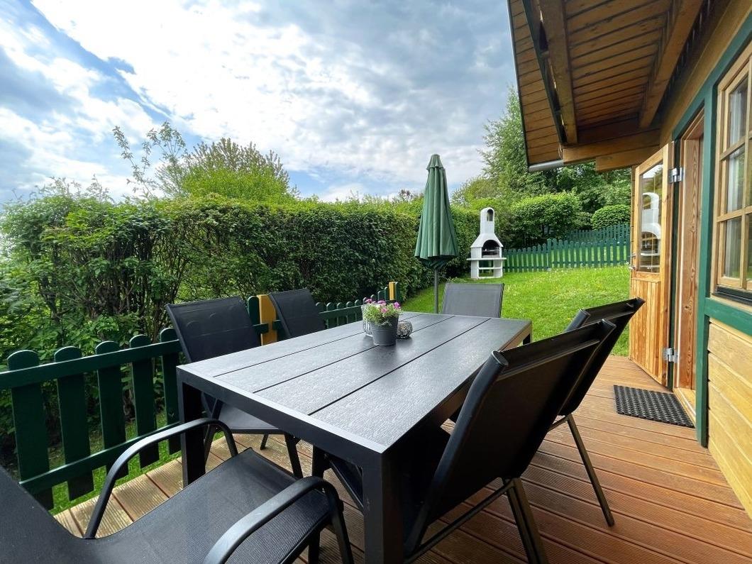 Der Garten des Ferienhauses ist komplett mit einem ca 80 cm hohen Zaun eingezäunt. Es stehen Ihnen Gartenmöbel kostenlos zur Verfügung. Durch die südliche Ausrichtung können sie fast den ganzen Tag die Sonne genießen.