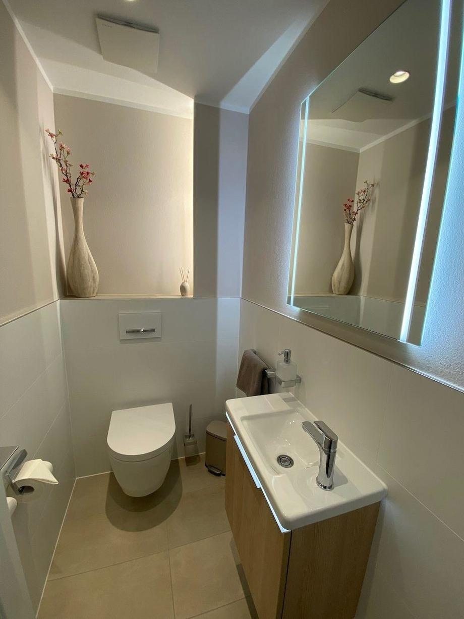 Gäste WC mit Waschbecken und Leuchtspiegel
