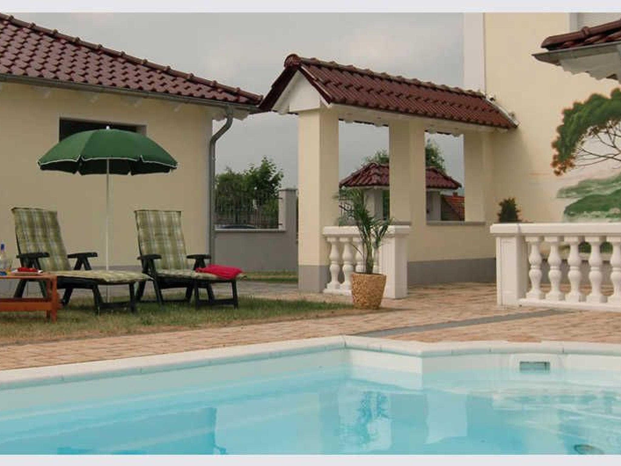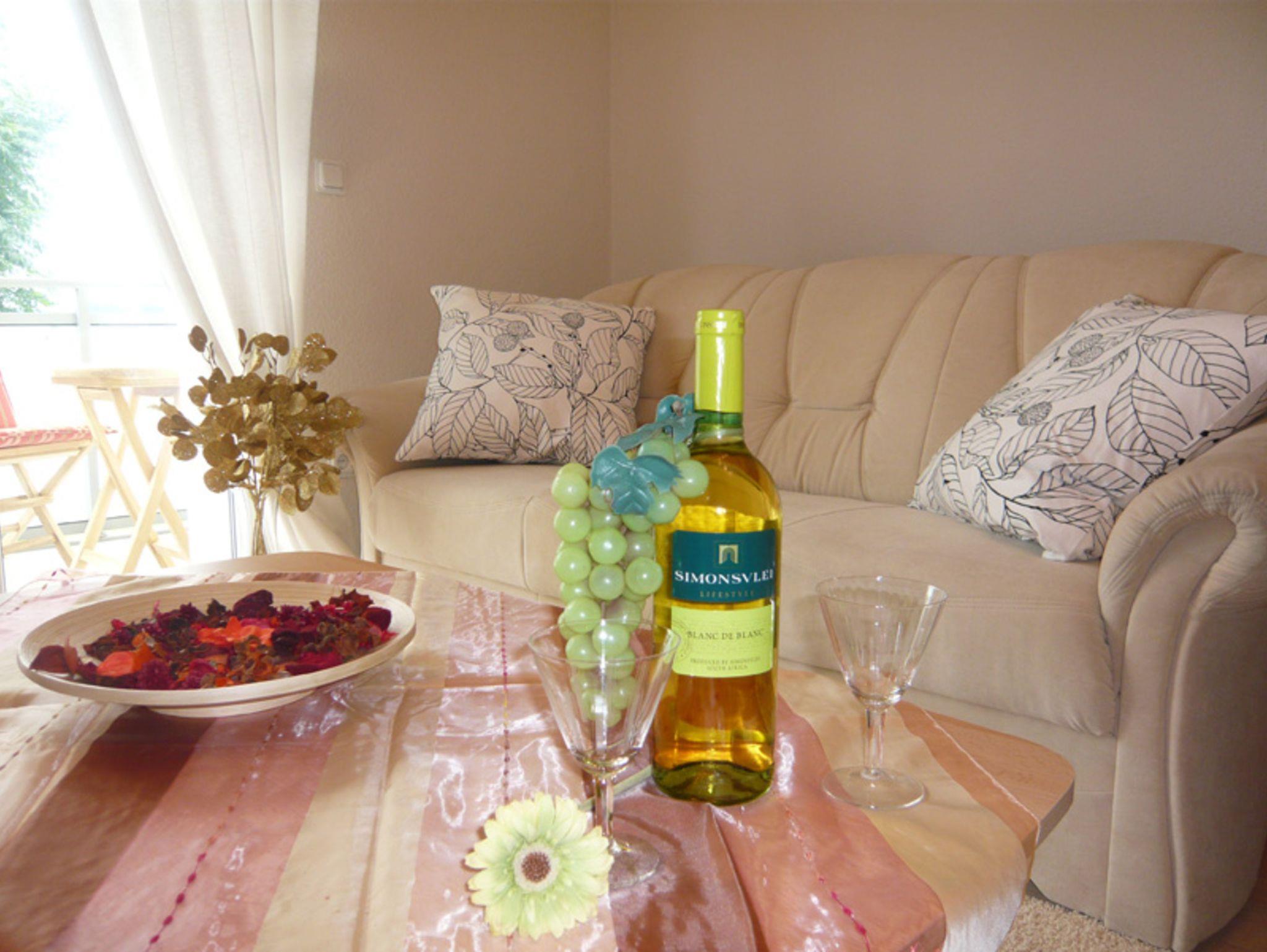 Wohnzimmer, Schlafzimmer, Bad, Küche mit Geschirrspüler, Balkon, Garten mit Pool / Sonnenliegen, wunderschöner Grillecke und Sauna - komplett eingerichtete Ferienwohnung