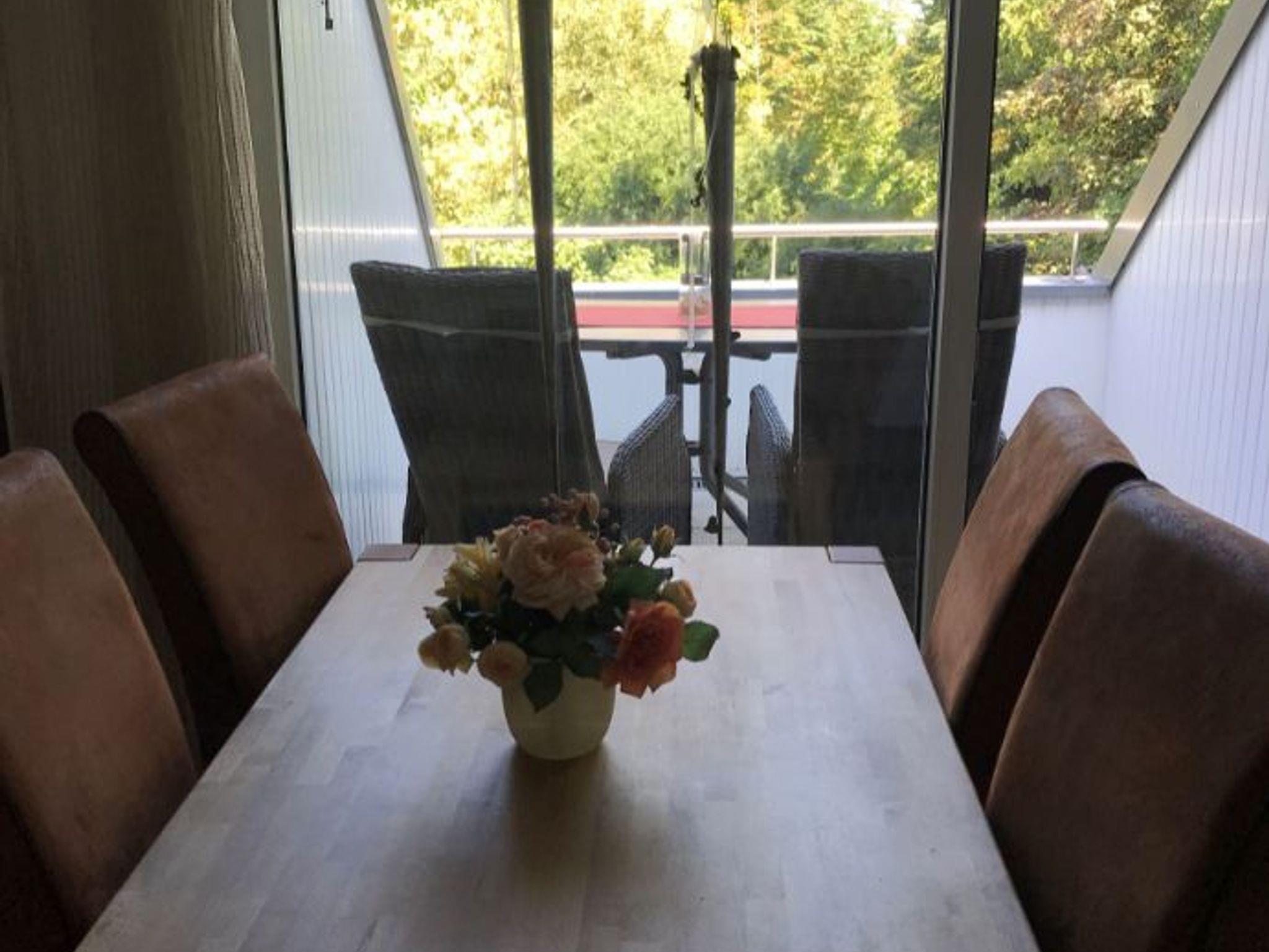 Es erwartet Sie eine komplett eingerichtete Küche (Spülmaschine, Mikrowelle) mit Essecke, ein komfortables Wohnzimmer, separates Schlafzimmer und ein modernes Badezimmer mit ebenerdiger Dusche mit viel Tageslicht. Auf der gemütlichen Loggia mit direktem Blick in den Kurpark können Sie entspannen.