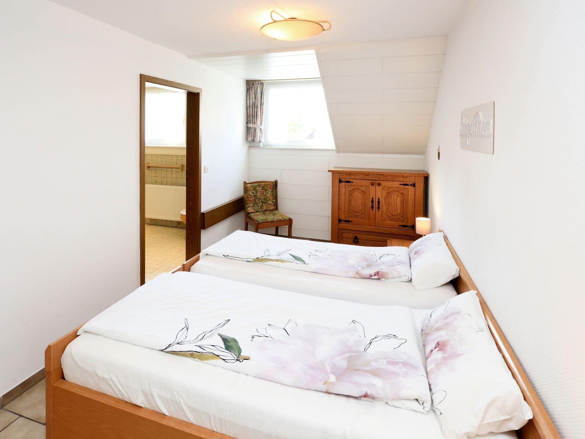 Bei Betreten der Wohnung befinden Sie sich in der Wohnküche. Die Küchenzeile ist ausgestattet mit einem Kühlschrank, 2 Platten-Cerankochfeld, Microwelle, Wasserkocher, Kaffeemaschine, Eierkocher, Toaster und Geschirr. Eine Essecke befindet sich im Wohnbereich. Die gemütliche Sitzecke mit Couch und Sessel und TV lädt zum Verweilen ein. Vom Wohnbereich gelangen Sie zum Balkon. Im Schlafzimmer befindet sich ein Doppelbett, das zu 2 Einzelbetten separiert werden kann, mit einem großen Kleiderschrank. Im Badezimmer mit Fenster finden Sie eine Dusche und WC. Ein Fön und Pflegeartikel (Shampoo, Duschgel etc.) sind vorhanden. Handtücher und Bettwäsche sind vorhanden, WLAN und Parkplatz sind kostenfrei. Ein Garagenstellplatz kann kostenpflichtig (auf Anfrage) hinzugebucht werden.