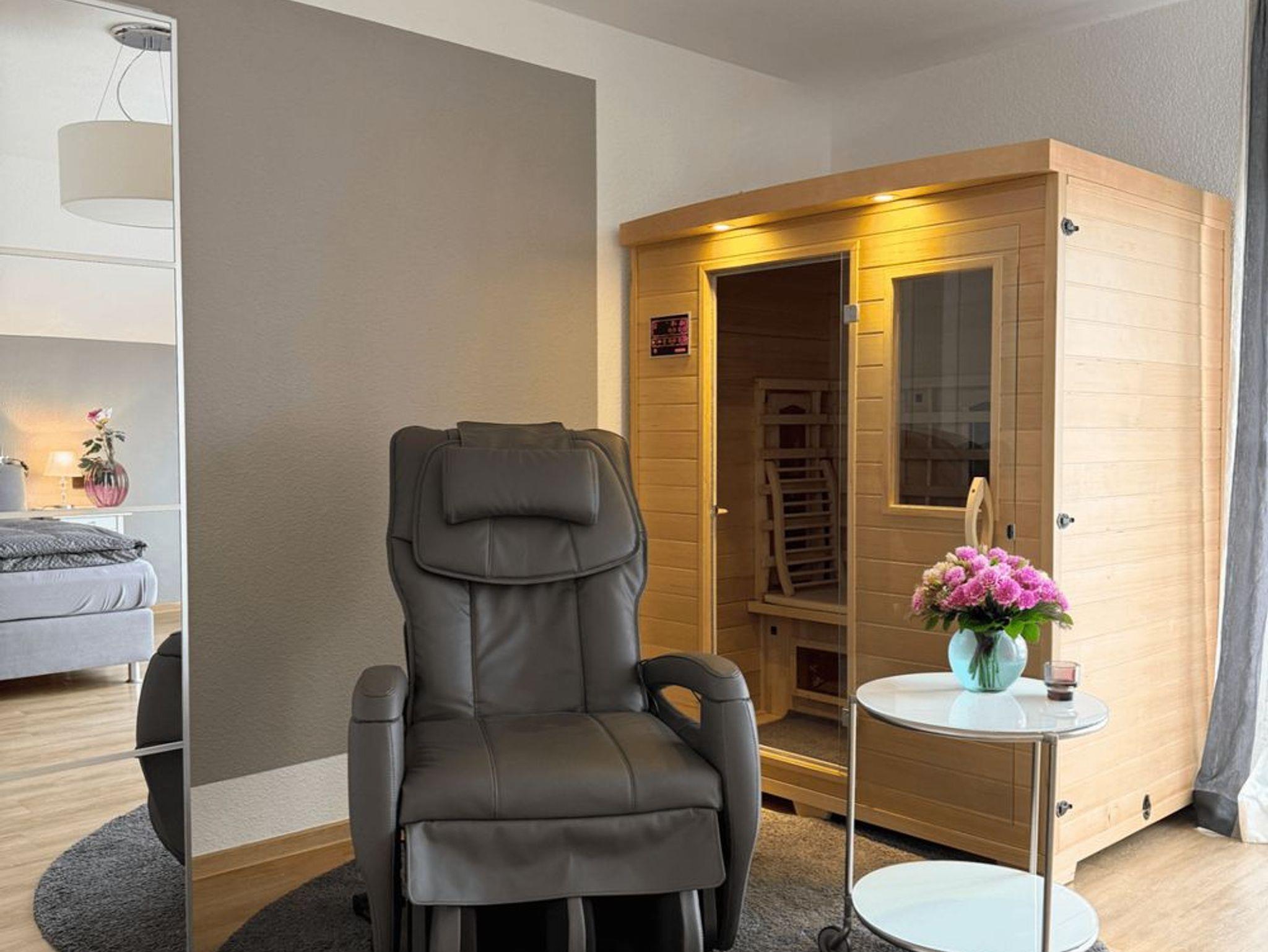 Entspannen Sie tiefenwirksam in der hochwertigen Infrarotsauna. Die wohltuende Wärme unterstützt die Regeneration und stärkt Ihr Wohlbefinden – wann immer Ihnen danach ist, ganz ohne Wartezeiten.