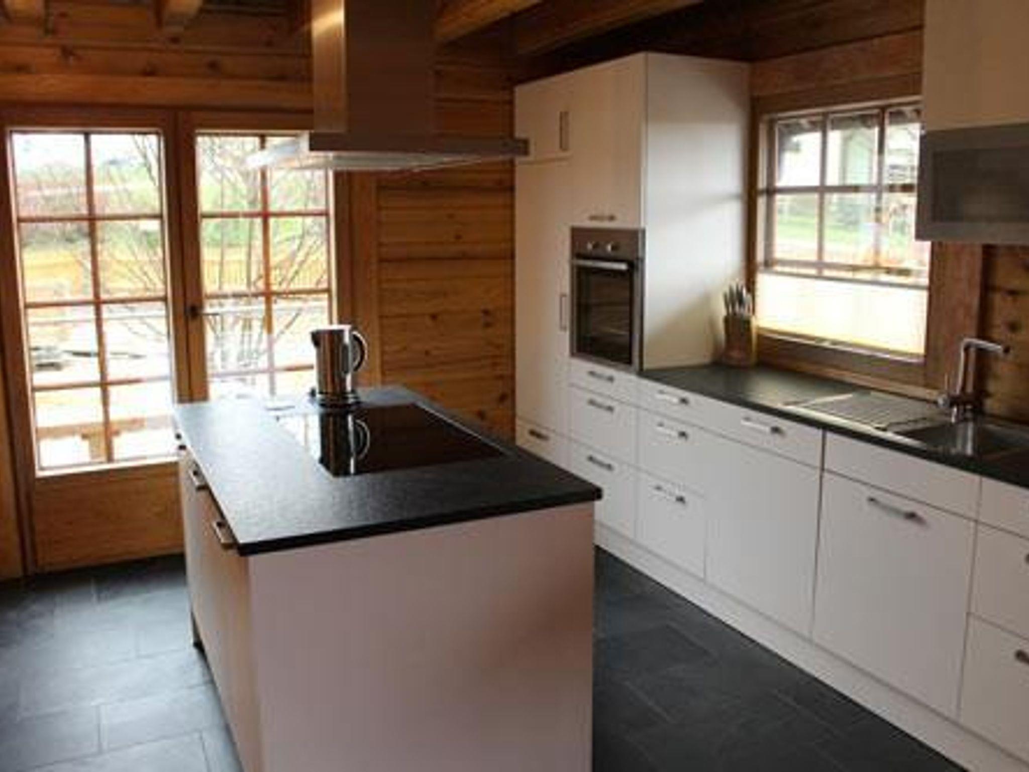 Im Erdgeschoss dieses allergikergeeignetes Nichtraucherhauses befinden sich ein gemütliches Wohnzimmer (ca. 38 m²) mit Kamin, Flat-TV, DVD mit Zugang zur Terrasse, eine komplett eingerichtete, neue Küche (ca. 27 m²) mit Ceranfeld, Kühlschrank, Geschirrspüler, Backofen, Fondue-Sets (Käse/Fleisch), Kaffeeautomat (Bohnen), Toaster und Wasserkocher. Angrenzend an diese Küche finden Sie einen Essbereich für bis zu 12 Personen vor. Weiterhin gibt es 1 Doppelschlafzimmer mit Ankleide (ca. 15 m²), Sauna und Dusche, ein Gäste-WC mit Waschbecken und eine große, zweiseitige Terrasse (ca. 70 m²) mit Mobilar und Grillgelegenheit.