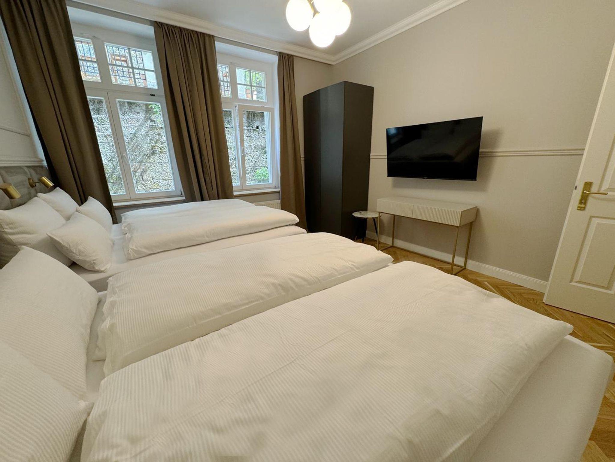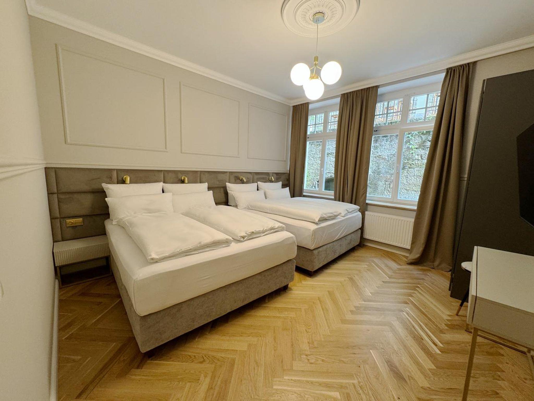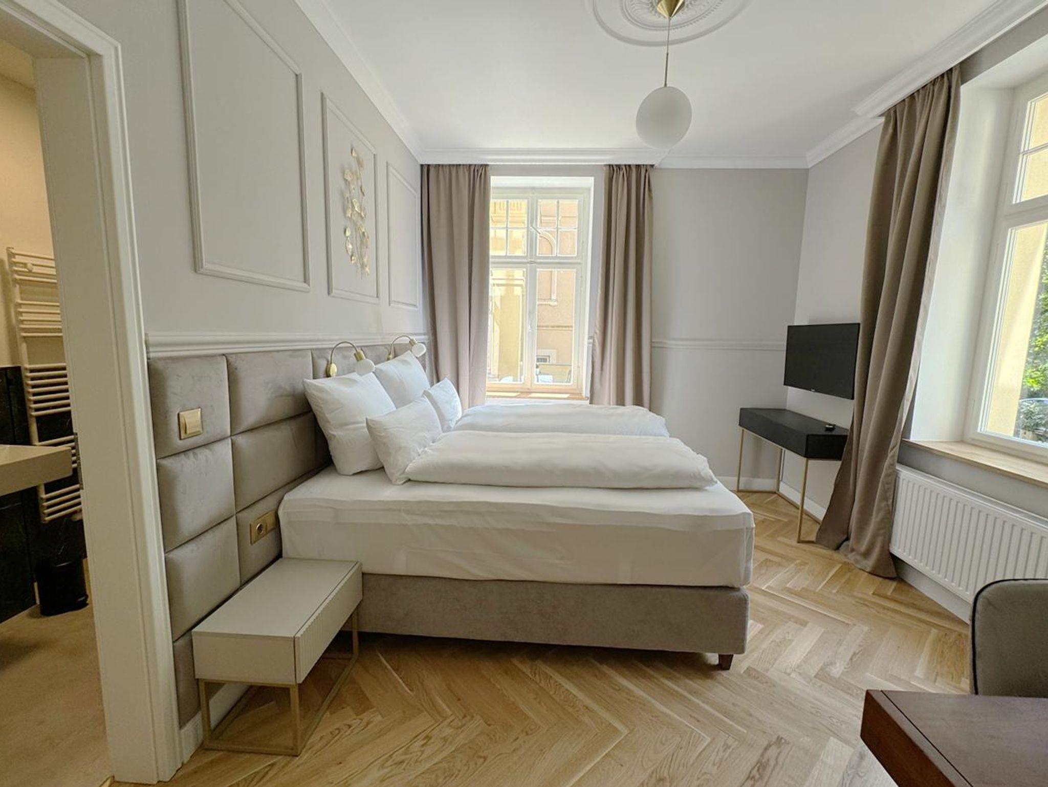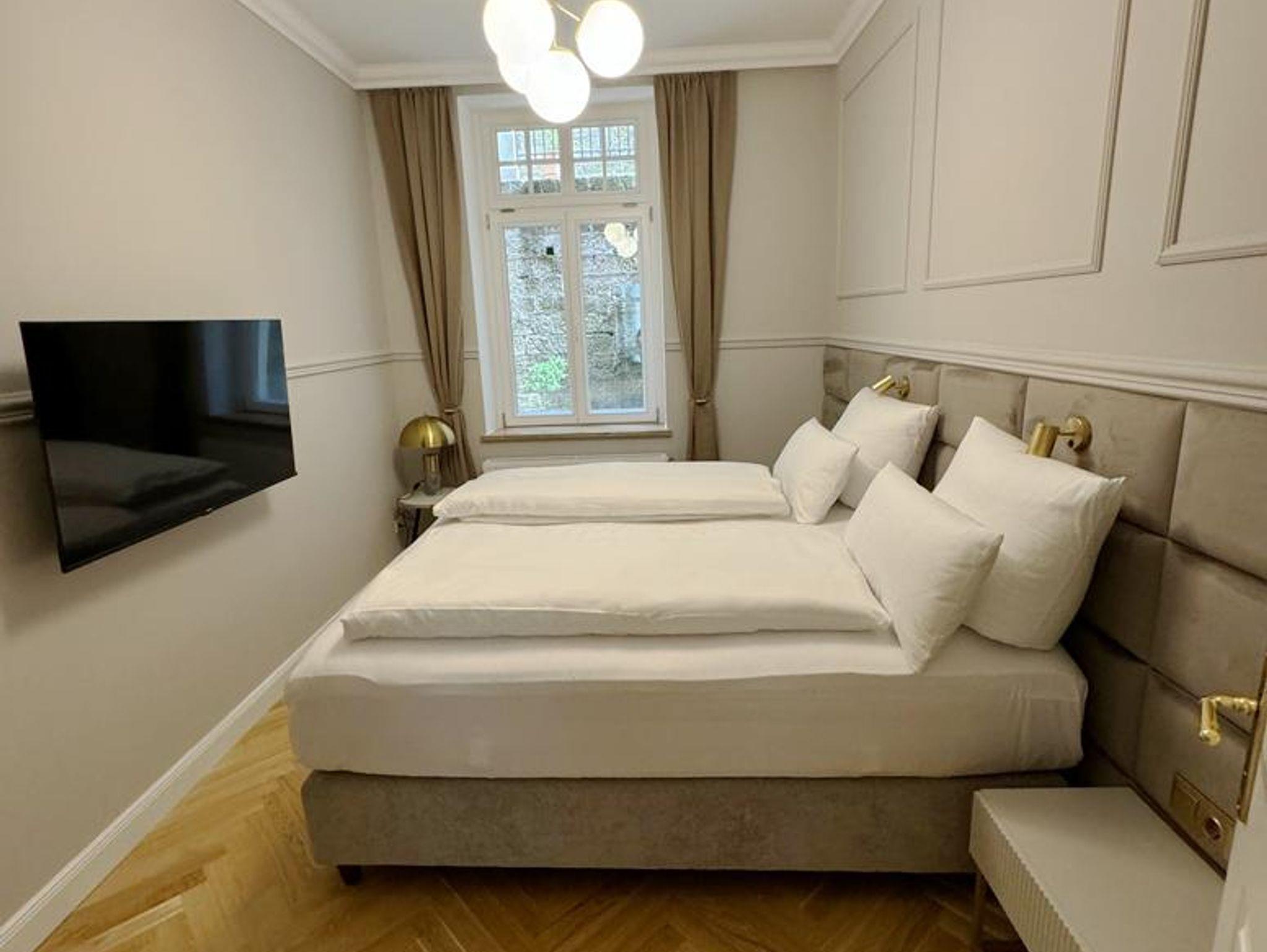 Genießen Sie hochwertige Boxspringbetten mit Memory Foam Matratzen, luxuriöse Bettwäsche und eleganten Fischgrätenparkett. Entspannen Sie in Ihrer privaten Sauna. Mit dem Residenz Tablet können Sie bequem Roomservice, Wellness-Produkte und Reinigungsservices bestellen. Erleben Sie historischen Charme und modernen Komfort.