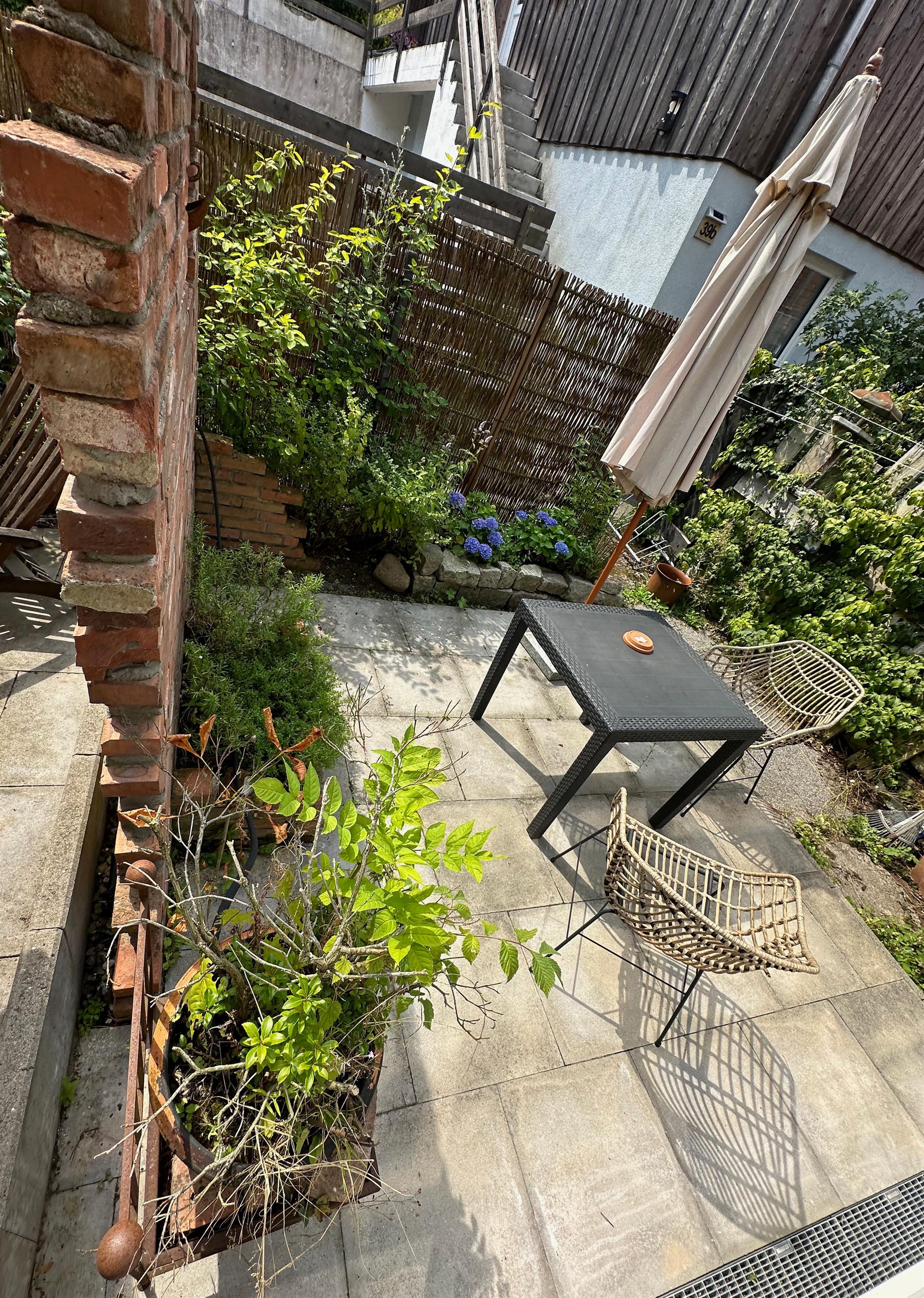 Privater Außenbereich: Genießen Sie Ihre eigene Terrasse im ruhigen Innenhof – perfekt für ein Frühstück im Freien oder entspannte Abende.