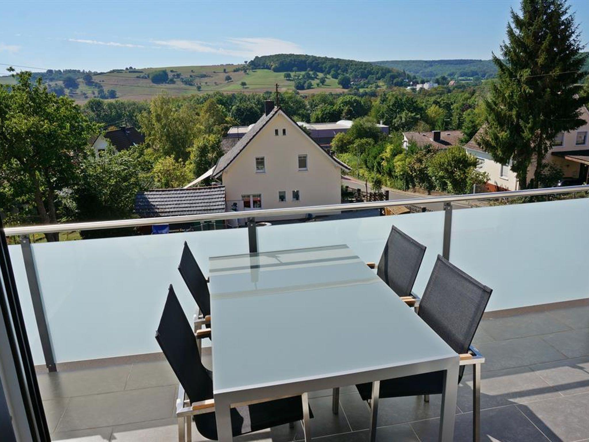 Im 1.Obergeschoss unseres Wohnhauses bieten wir Ihnen eine Komfort-Ferienwohnung (ca.60qm, max.4-5 Pers.) mit separatem Wohn- und Schlafzimmer, voll ausgestatteter Küche mit Geschirrspüler und Essplatz für 4-5 Personen, sowie ein Badezimmer mit hellen Wandfliesen, Wanne und WC. Die Wohnung ist im Landhausstil mit überwiegend heller Möblierung, Glattputz mit warmen Farbtönen sowie Echtholzböden ausgestattet, was den charmanten Charakter des Landhausstils nochmals unterstreicht. Der Südbalkon mit Esstisch, gemütlichen Sitzgelegenheiten und Sonnenmarkise lädt nicht zuletzt wegen seiner schönen Aussicht Richtung Nahetal auch zum längeren Verweilen ein.