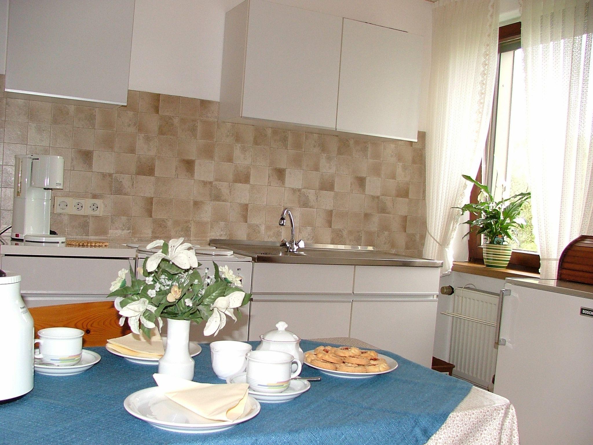 Gemütlich eingerichtete Ferienwohnung für 2 Personen, mit Wohn-Schlafraum (richtige Betten), Küche-Esszimmer kompl. eingerichtet und Dusche/WC (keine Badewanne) sowie möbl. Balkon.