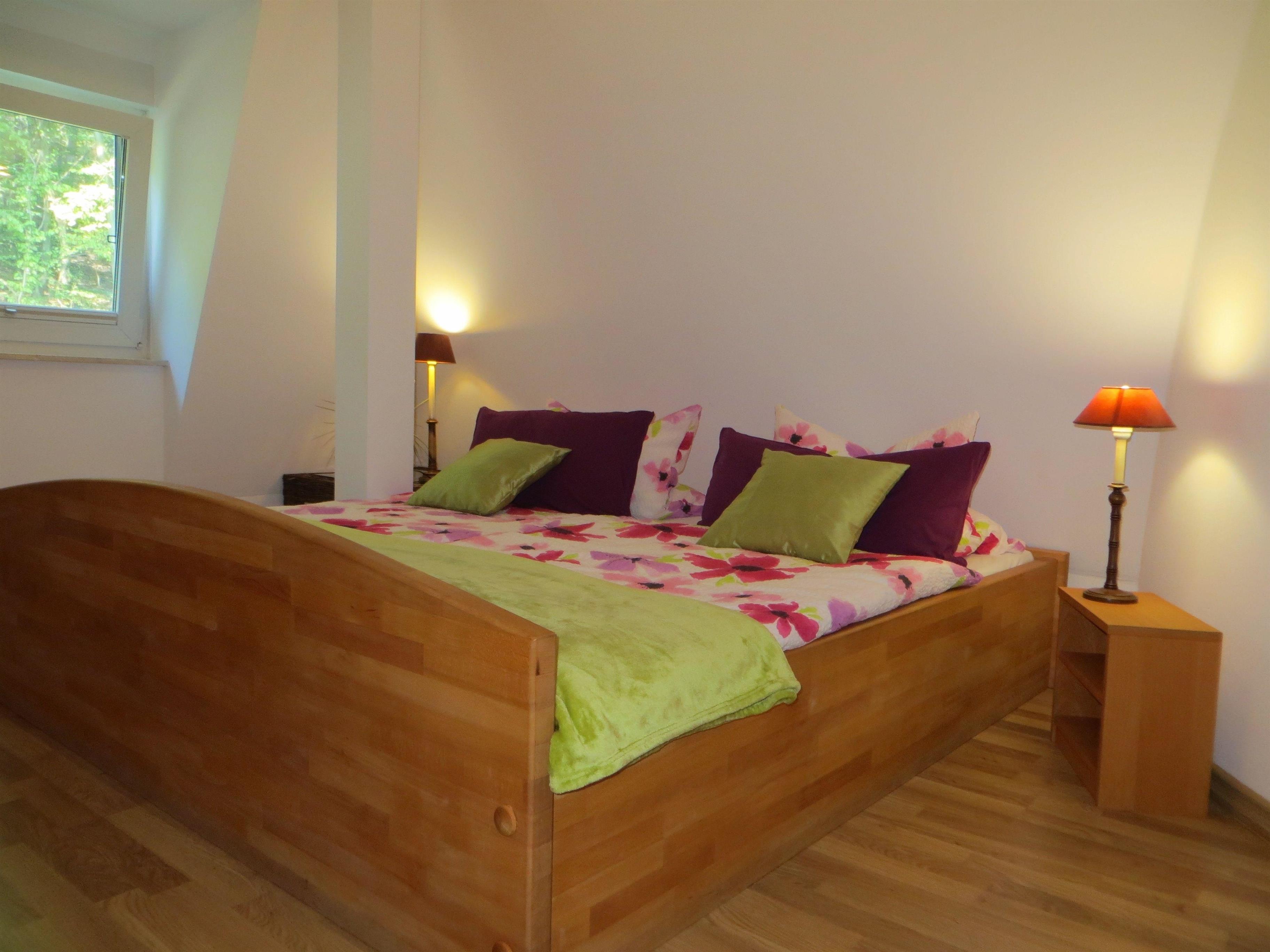 Die Wohnung befindet sich im Obergeschoss, ist ca. 60 Quadratmeter groß und hat ein Badezimmer, ein Schlafzimmer und ein Wohnzimmer mit integrierter Küche. Es besteht die Möglichkeit, dass noch zwei weitere Personen auf einem großen Bettsofa im Wohnzimmer übernachten können.