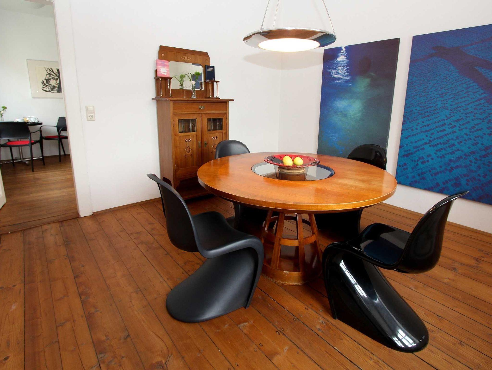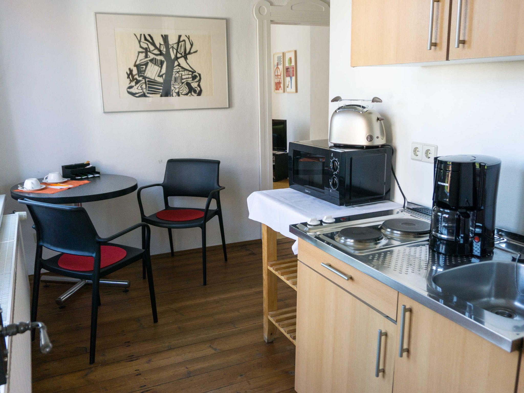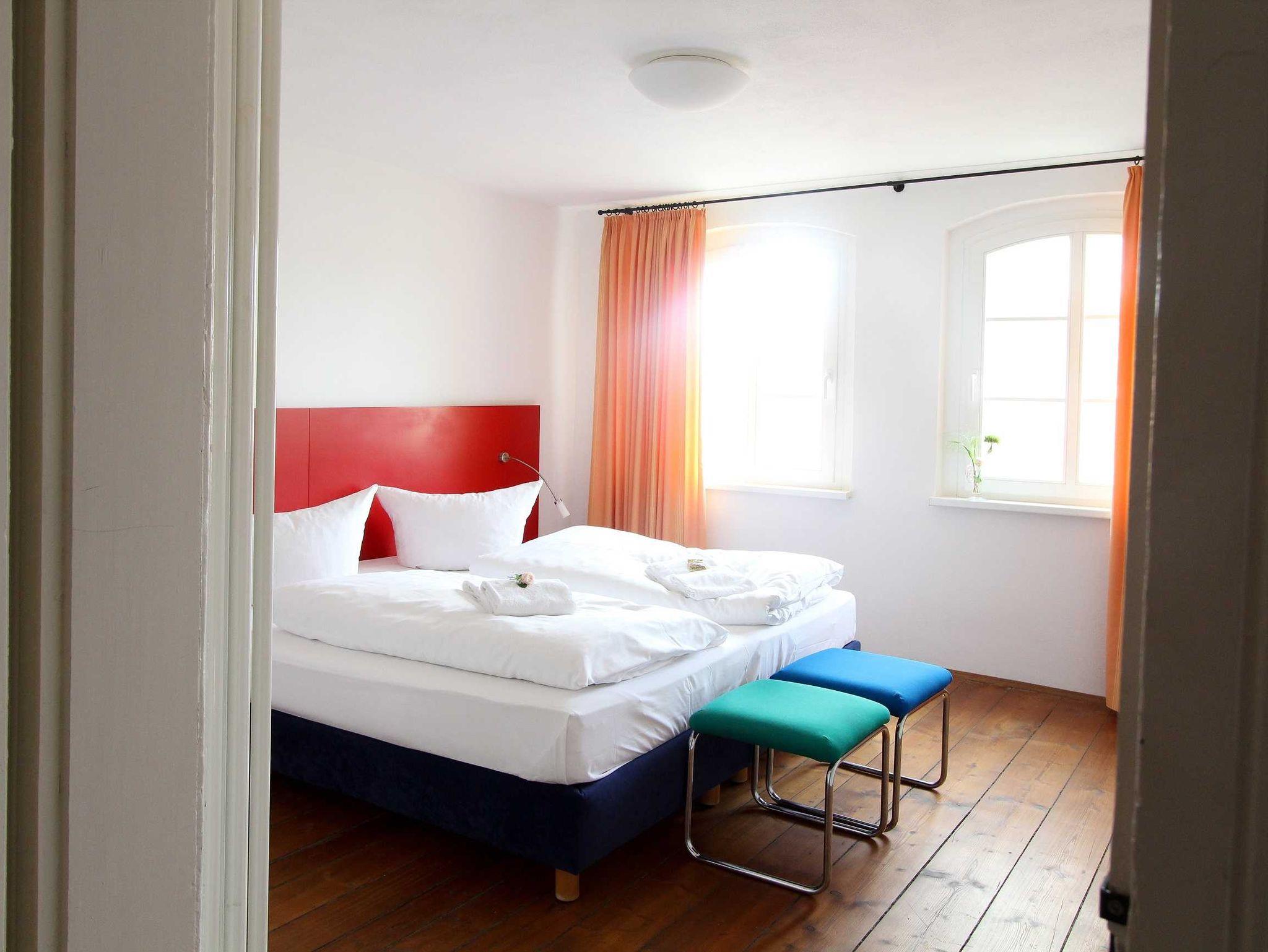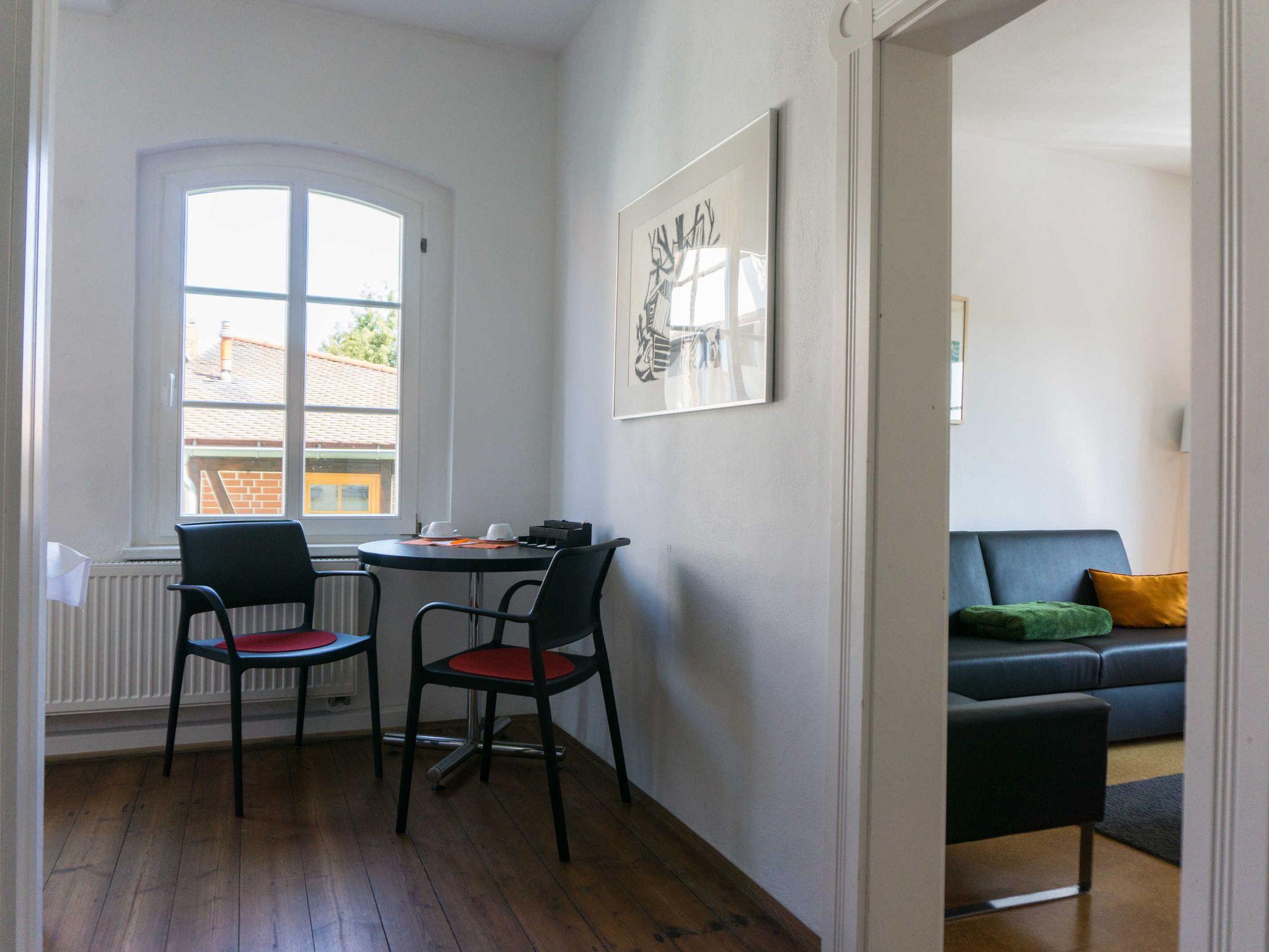 In historischem Gemäuer mit avantgardistischer Einrichtung auf ca. 80m²: Küche mit Herd, Wasserkocher, Kühlschrank, Wohnbereich mit Eckcouch & Sessel sowie TV, Esszimmer mit großem Esstisch und 4 Stühlen. Ein Bad mit Dusche/WC, Haartrockner, Kosmetikspiegel sowie in der 2. Etage: zwei Schlafzimmer mit Doppelbett sowie ein Ankleidezimmer. Die Nutzung erfolgt als Ferienwohnung ohne Verpflegung mit kompletter Küchen- und Geschirrausstattung sowie inkl. Bettwäsche, Handtüchern sowie Endreinigung.