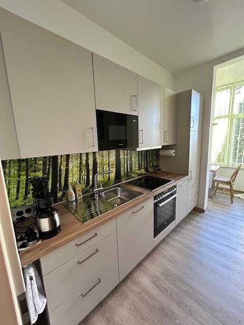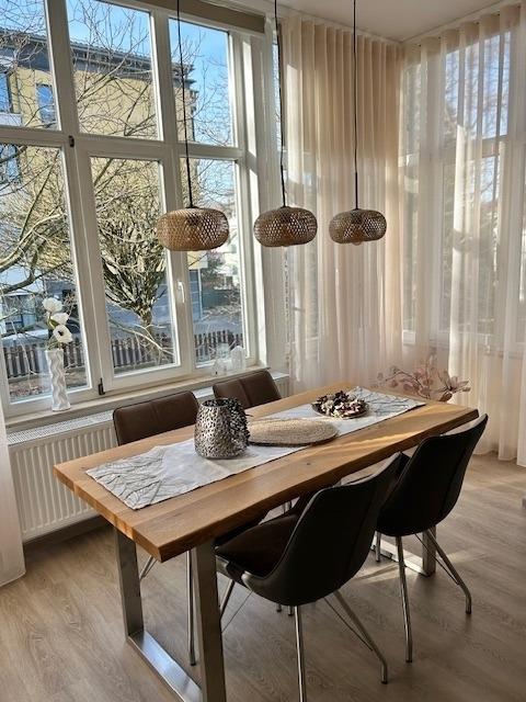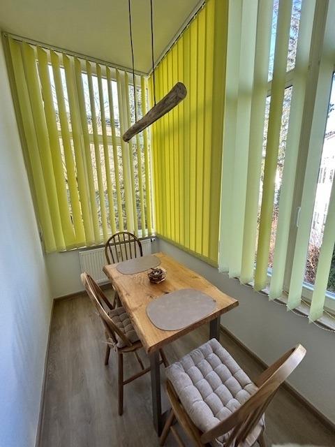 Im Inneren der Wohnung erwartet Sie eine stilvolle Einrichtung, geprägt von lichtdurchfluteten Räumen, klaren Linien und warmen Farbakzenten, die eine einladende Atmosphäre schaffen. Das Schlafzimmer ist mit einem bequemen Doppelbett ausgestattet, das verspricht, jede Nacht zu einem erholsamen Erlebnis zu machen. Das moderne Badezimmer verfügt über eine erfrischende Regendusche, ideal, um sich nach einem Tag voller Erkundungstouren zu entspannen. Die offene Küche und der angrenzende Essbereich bilden den perfekten Rahmen, um den Tag mit einem gemütlichen Frühstück zu beginnen oder bei einem Glas Wein ausklingen zu lassen, während das Wohnzimmer einen erholsamen Rückzugsort zum Lesen oder Abschalten bietet. Hier lässt sich die ruhige Atmosphäre von Bad Tabarz in vollen Zügen genießen, wobei die zahlreichen Fenster der Wohnung für ein kontinuierliches Einfallen von natürlichem Licht sorgen und so zu jeder Tageszeit eine freundliche und angenehme Stimmung erzeugen. Die Umgebung von Bad Tabarz bietet eine perfekte Mischung aus natürlicher Schönheit und Kultur, ideal für jeden, der die Vielfalt Thüringens erkunden möchte. Als Highlight ist in Ihrem Aufenthalt eine Gästekarte inkludiert, die Ihnen nicht nur Vergünstigungen wie täglich zwei Stunden freien Eintritt ins Kur- und Familienbad Tabbs gewährt, sondern auch die Tür zu weiteren attraktiven Ermäßigungen in der Region öffnet. Entdecken Sie die reiche Geschichte, die malerischen Landschaften und die herzliche Gastfreundschaft, die Bad Tabarz zu einem einzigartigen Reiseziel machen. Genießen Sie Ihren Aufenthalt in unserer Ferienwohnung, die nicht nur mit ihrer einmaligen Lage im Herzen von Bad Tabarz begeistert, sondern auch durch eine hochwertige Innenausstattung, die keine Wünsche offen lässt. Ob Sie in der Natur aktiv sein, Kultur erleben oder einfach nur die Ruhe genießen möchten – hier finden Sie den perfekten Ausgangspunkt für Ihre Erkundungen. Freuen Sie sich auf unvergessliche Momente in einem Zuhause, das jeden Tag Ihrer Reise zu etwas Besonderem macht.