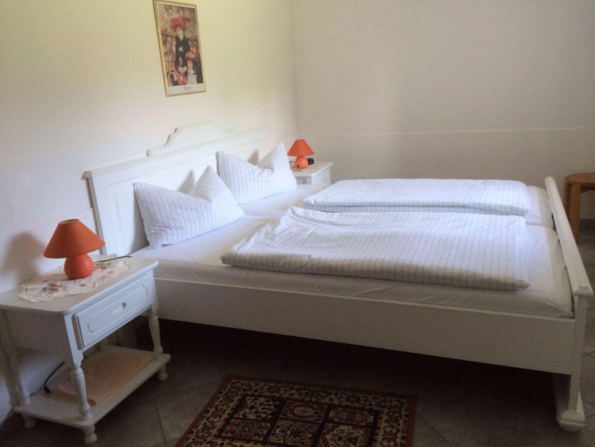 Die beiden Schlafzimmer befinden sich im Souterrain und sind nach Norden gerichtet. Sie verfügen über Doppelbetten und ausreichend große Kleiderschränke. Zur Not finden auf der ausziehbaren Couch im Wohnzimmer zwei weitere Gäste eine Schlafmöglichkeit.