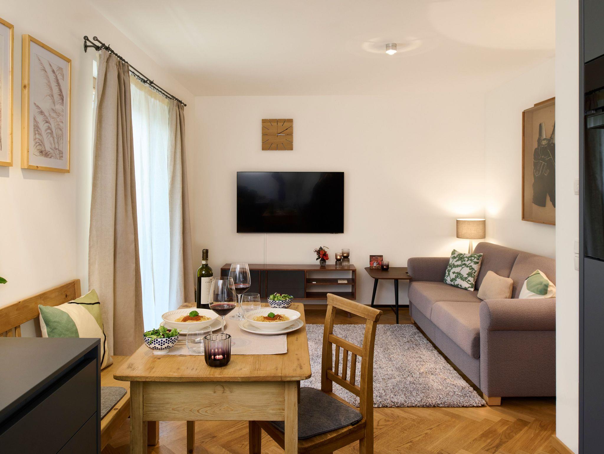 Alpine Lebensart gepaart mit schlichter Eleganz, bodenständig und luxuriös zugleich. Im EG gelegen, Westterrasse, komplett eingezäunter Garten, Parkettfußboden, Smart-TV, Nichtraucherwohnung, Boxspringbetten 180 x 200, hochwertige Küche, voll ausgestattet, Leihbademantel, Pflegeprodukte, ruhig gelegen in einer Sackgasse.