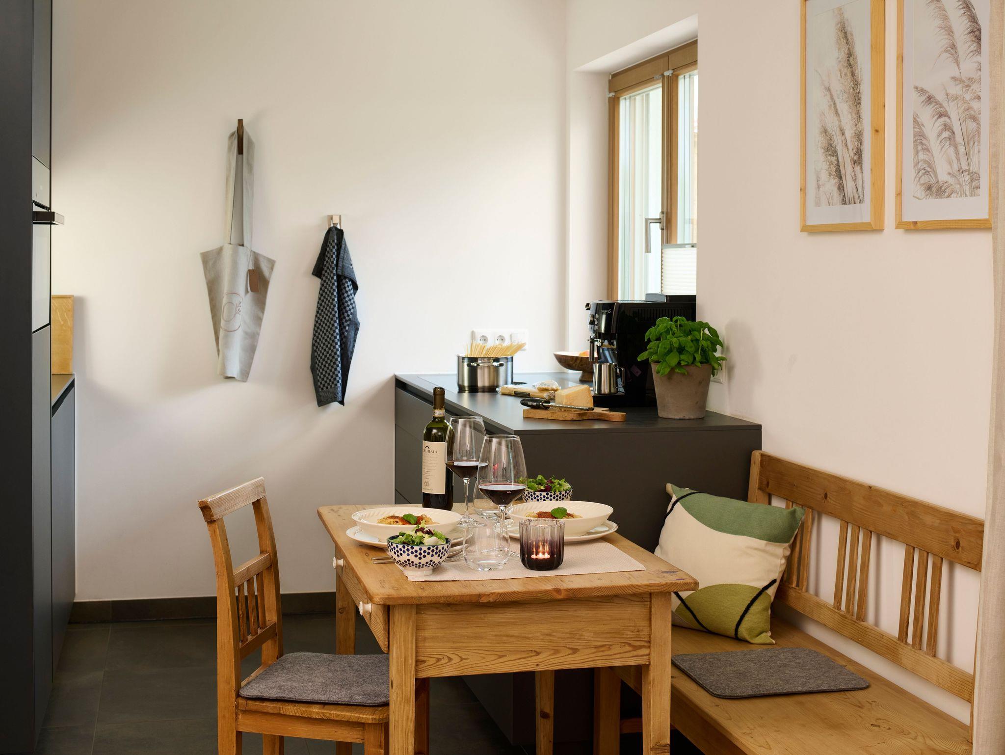 Der verantwortungsvolle Umgang mit der Natur ist eine Selbstverständlichkeit und ein wichtiger Grundsatz. Naturnahe Appartements, urtürmlich, athentisch und - vor allem auch - nachhaltig. Die Natur hat uns inspiriert und motiviert. Parkettfußboden und Naturmaterialien sorgen für Wärme und Seele und verleihen unseren Appartements diesen persönlichen und besonderen Stil. Hochwertige Küchen mit Geschirrspüler, Flat-TV, Sonosanlage u. nachhaltige Pflegeprodukte. Auch eine E-Ladestation steht den Gästen zur Verfügung (Extragebühr).