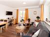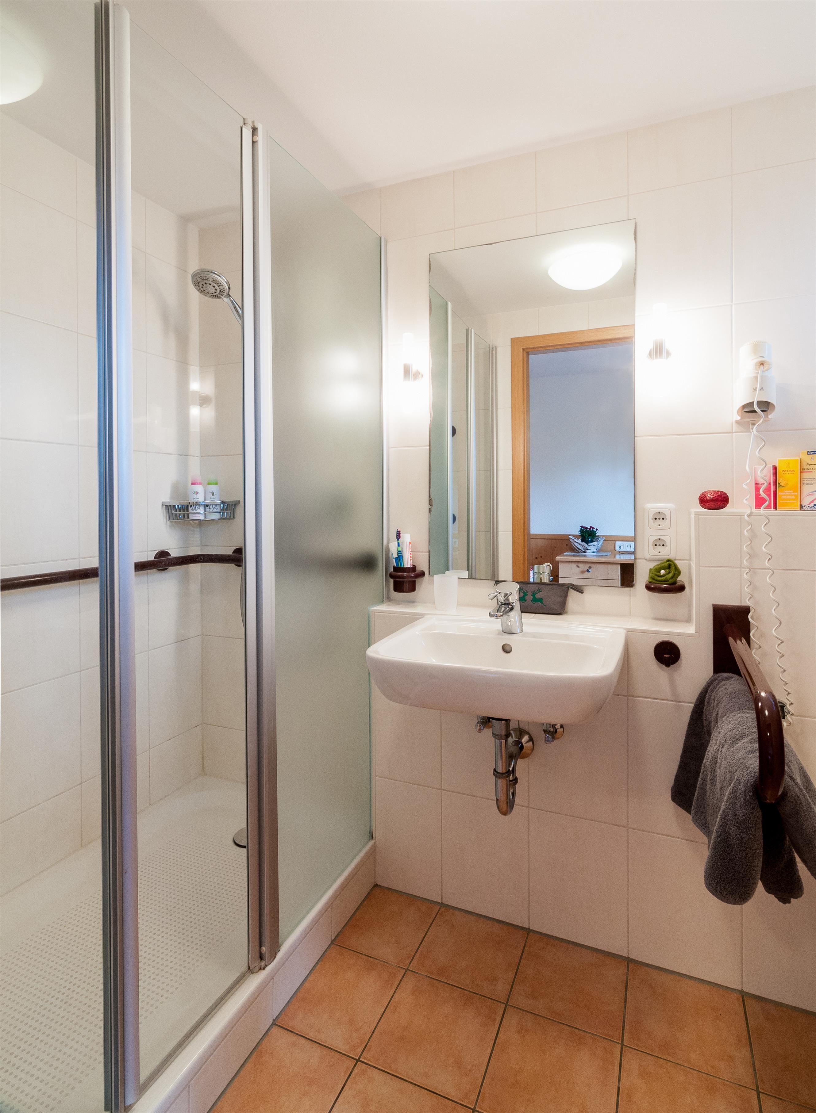 Diese Wohnung hat ein Wohnzimmer mit Couch und Sessel, Esstisch und Küchenzeile. Die Besonderheit bei dieser Wohnung, sie besteht aus 2 Einzelbettschlafzimmern mit jeweils angrenzendem Bad Dusche/WC und ist somit bestens für getrennt Schläfer geeignet. Für Gehbehinderte ist die Wohnung bedingt geeignet, für Rollstuhlfahrer ist die Wohnung nicht geeignet.