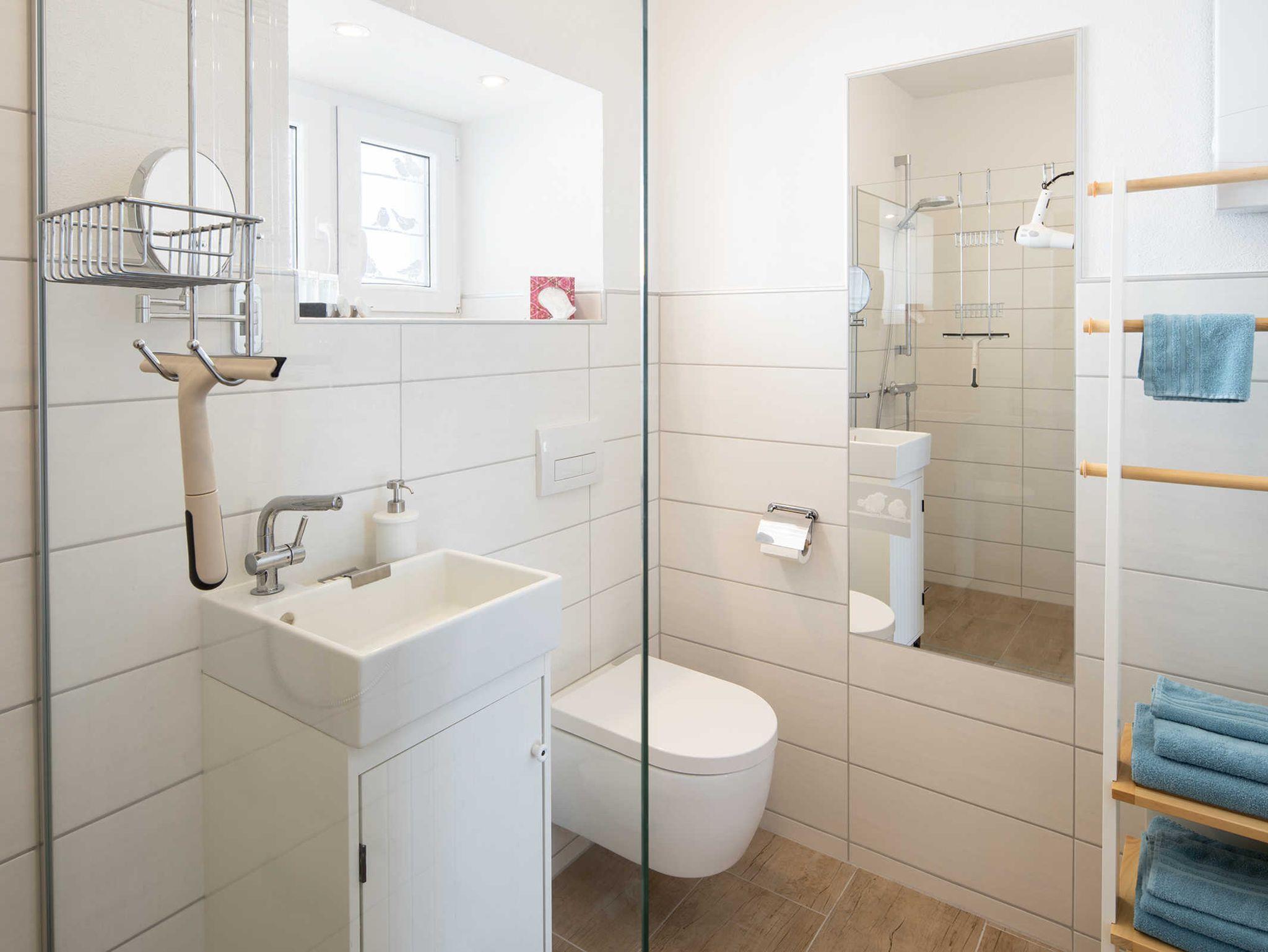 Das Badezimmer ist modernster Standard und verfügt über eine bodenebene Dusche.