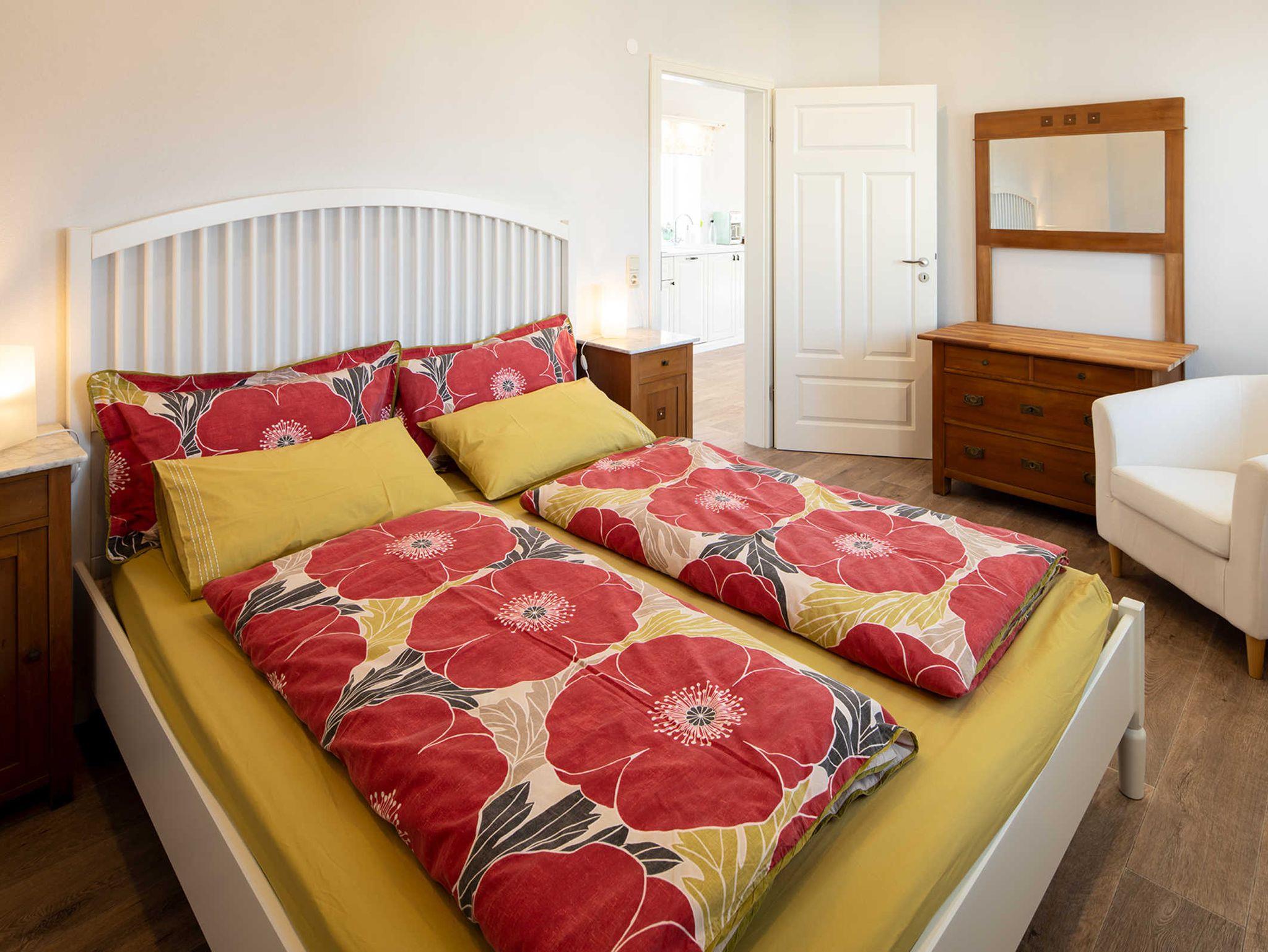 Die großzügige Ferienwohnung (55 qm) verfügt über ein separates Schlafzimmer und eine Wohn-/Essküche mit allen Utensilien des täglichen Bedarfs und einer weiteren komfortablen Schlafmöglichkeit für 2 Personen.