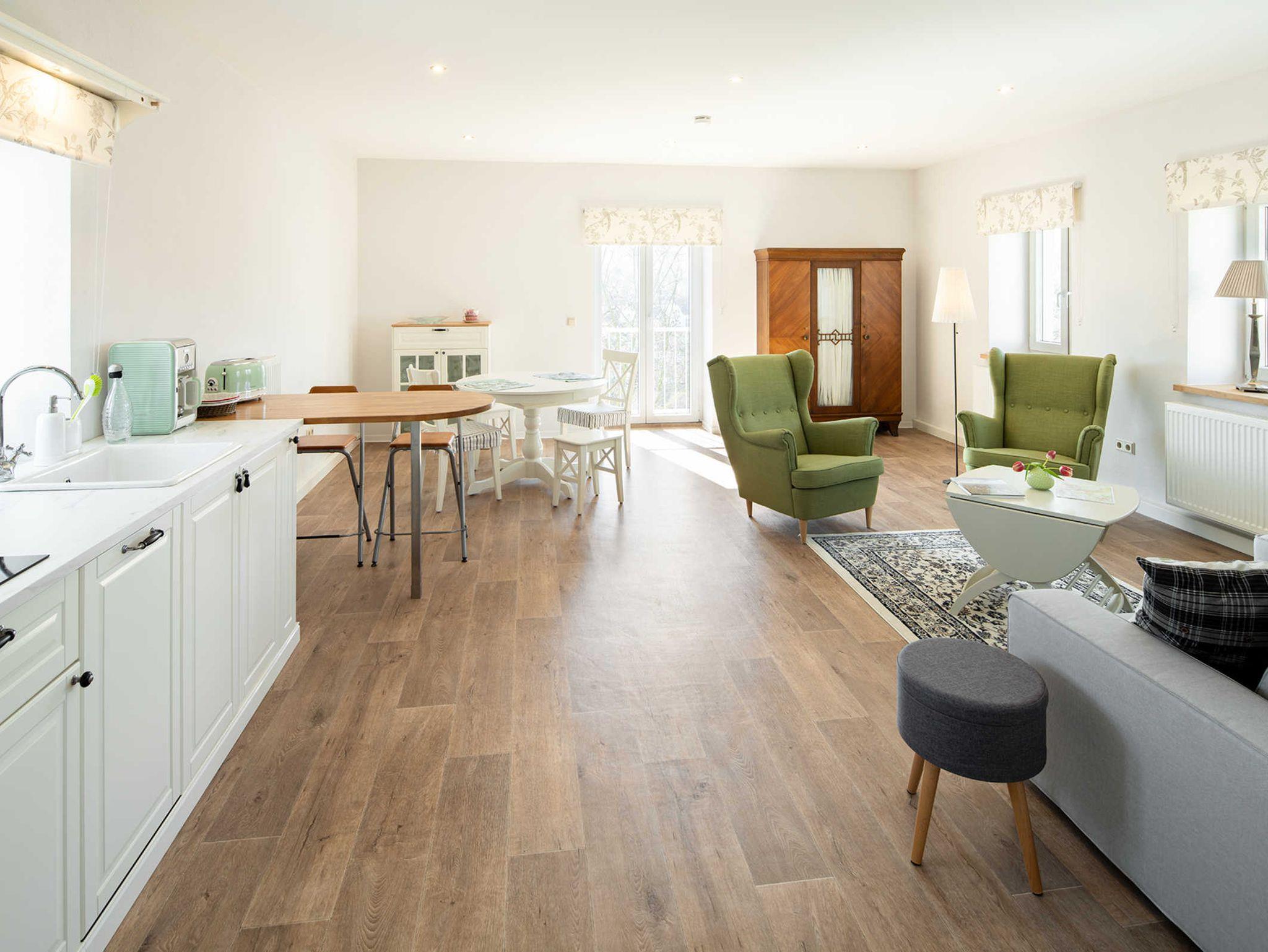 Hier können Sie sich entspannen, nach Lust und Laune kochen und am runden Esstisch gesellige Abende verbringen. Wlan und TV inklusive.
