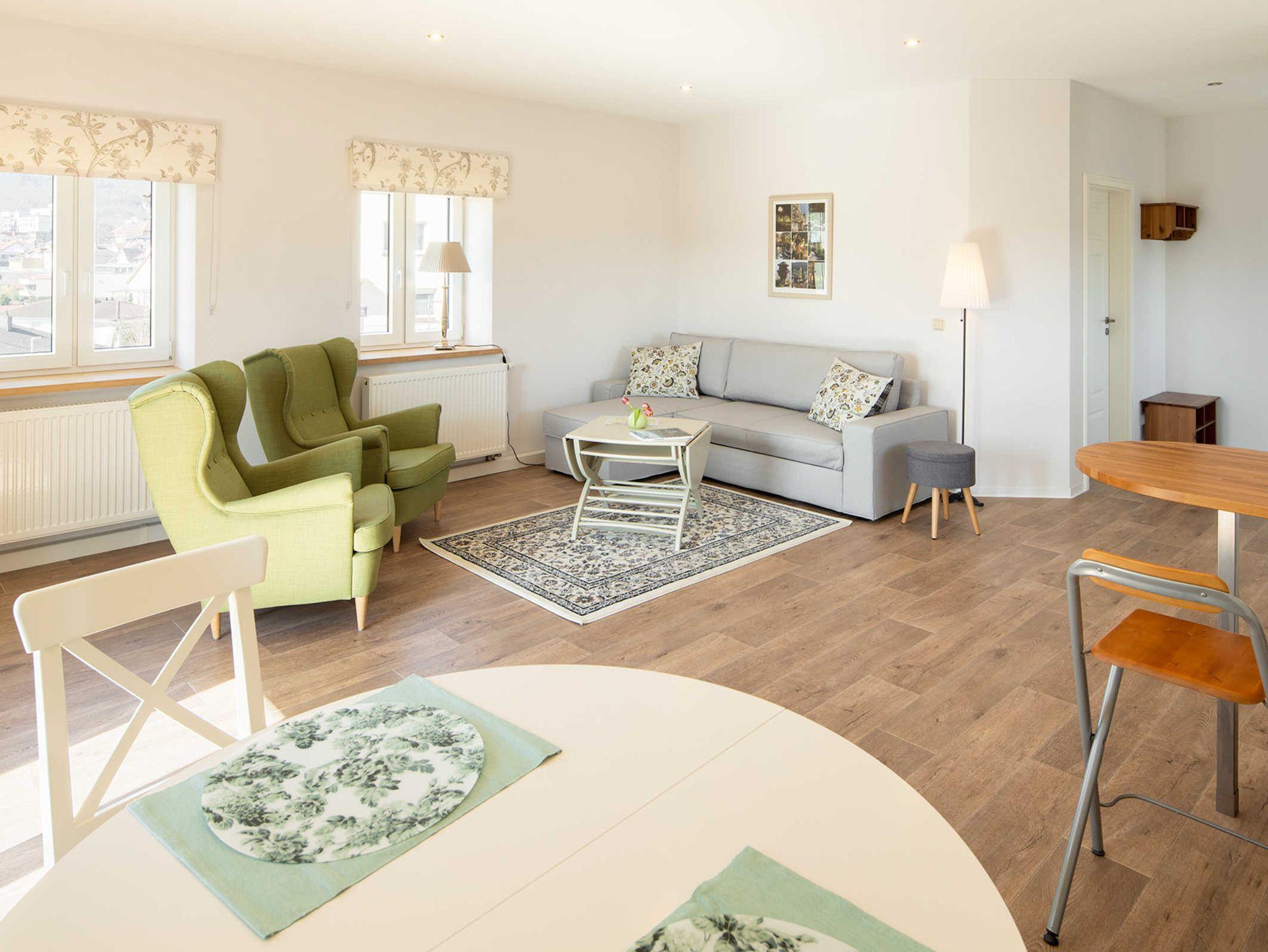 Unsere Ferienwohnungen am Rande der Altstadt sind absolut ruhig im Hinterhof gelegen, ohne Straßenverkehr und mit Panoramablick. Großzügige Fenster tauchen die Räume tagsüber in natürliche Helligkeit. Bei schönem Wetter können Sie auf einer separaten Terrasse ihre Mahlzeiten genießen, Sonne tanken und entspannen. Parkmöglichkeiten sowie sichere Abstellgelegenheiten für Fahrräder und Kinderwägen sind gegeben. Alle Einkaufs- und Erholungsmöglichkeiten sind nur wenige Gehminuten entfernt.