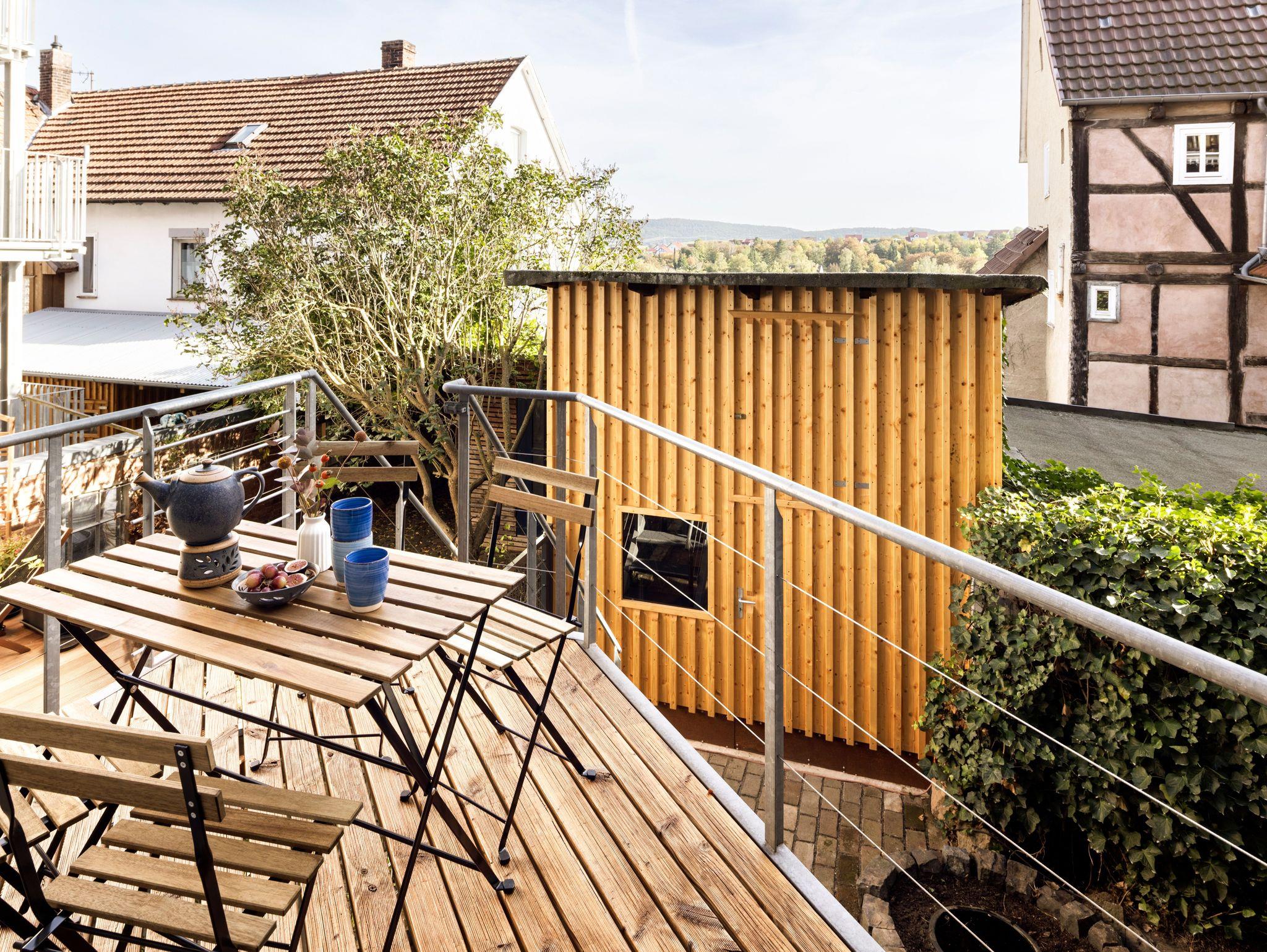 Ein Highlight: Zum Ferienhaus Altstadtflair gehört ein kleiner Schrebergarten am Schlossberg (Landesgartenschaugelände), in dem man feiern und auch grillen darf.