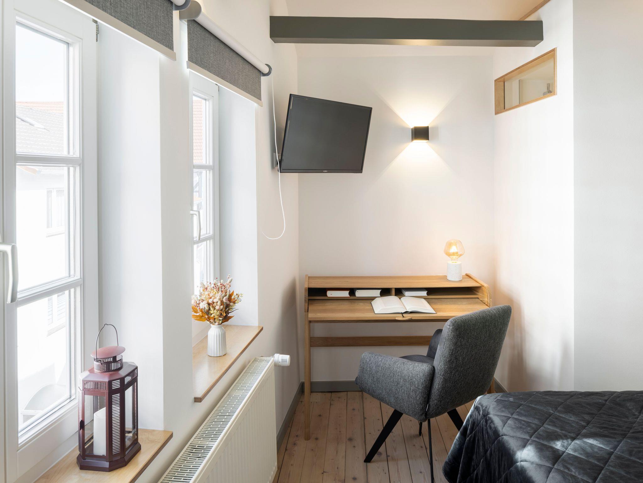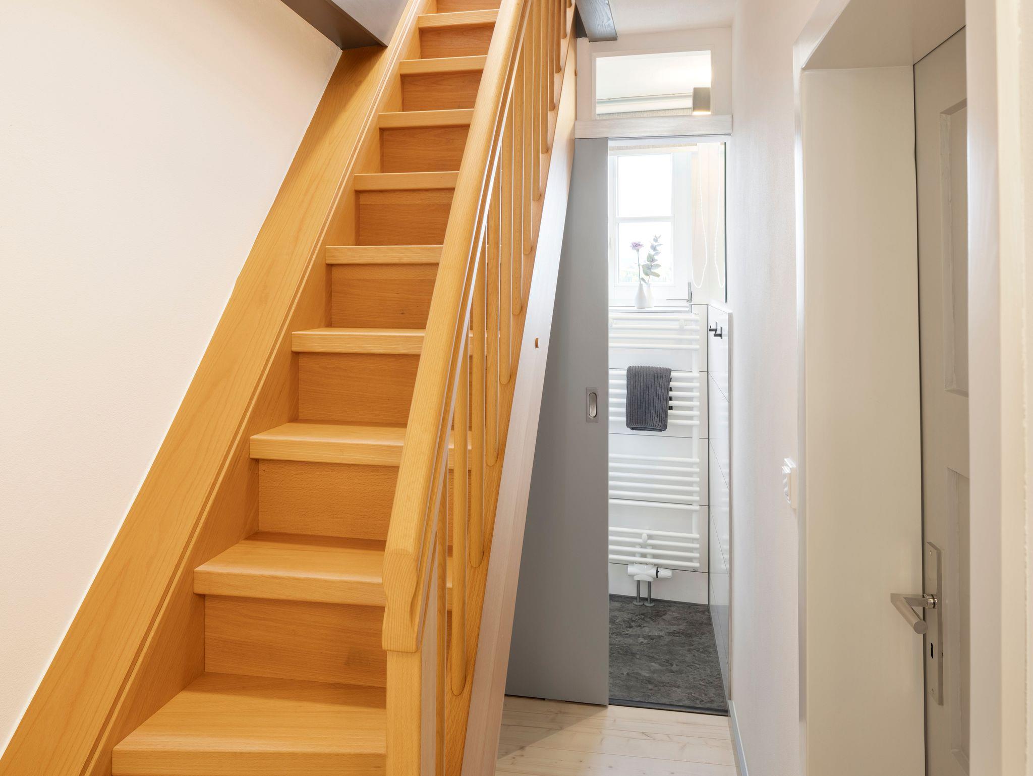 Die Gäste werden ein Haus vorfinden, in dem historisches Flair und moderne Wohnanforderungen perfekt kombiniert sind. Ganz ohne Kompromisse geht so etwas natürlich nicht. Die Treppen werden Sie als etwas schmaler und steiler als gewohnt empfinden. Die Korridore zu den Zimmern sind für eine Person breit genug. Aber es gibt nur ganz wenige Stellen, wo die Kopffreiheit eingeschränkt ist.