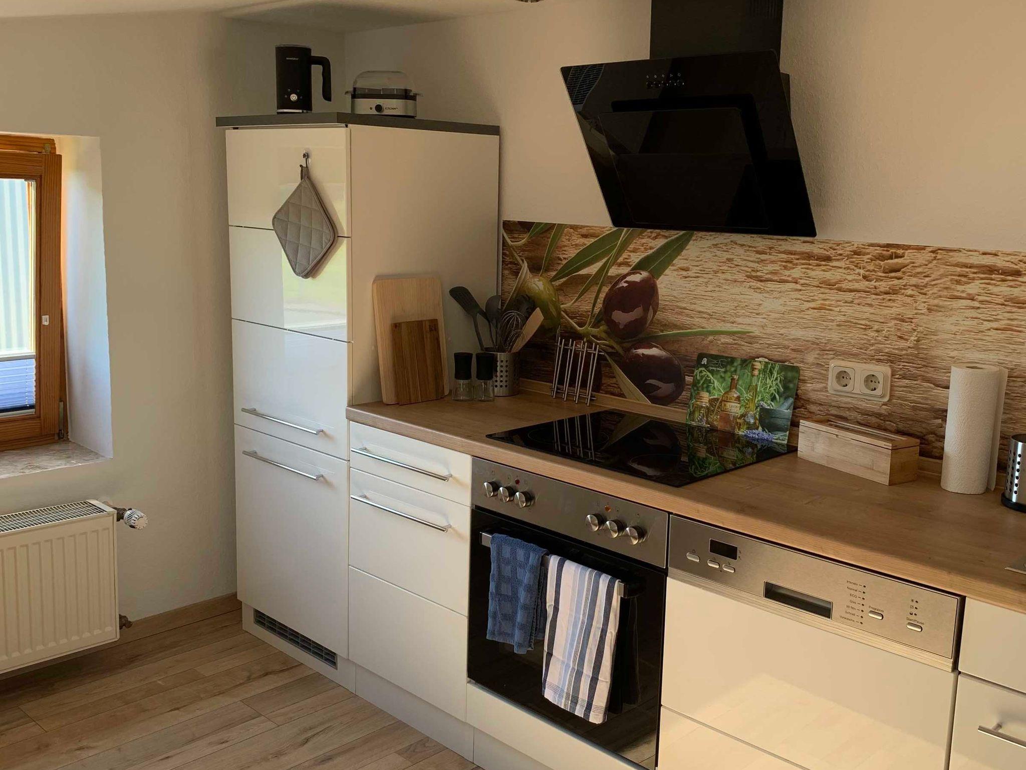 Sie können sich ihre Mahlzeiten, in der voll ausgestatteten Küche mit Kochfeld, Ofen, Geschirrspüler, Kaffeemaschine, Toaster, Milchaufschäumer, Wasser,-u. Eierkocher selbst zubereiten. Die Unterkunft verfügt weiterhin über ein Wohnzimmer mit einem Sofa und einem Flachbild-Sat-TV, sowie ein eigenes Bad mit DU-WC und einem Haartrockner. Im Schlafzimmer steht Ihnen ein großes Doppelbett und ein offenes Kleiderschranksystem zur Verfügung.