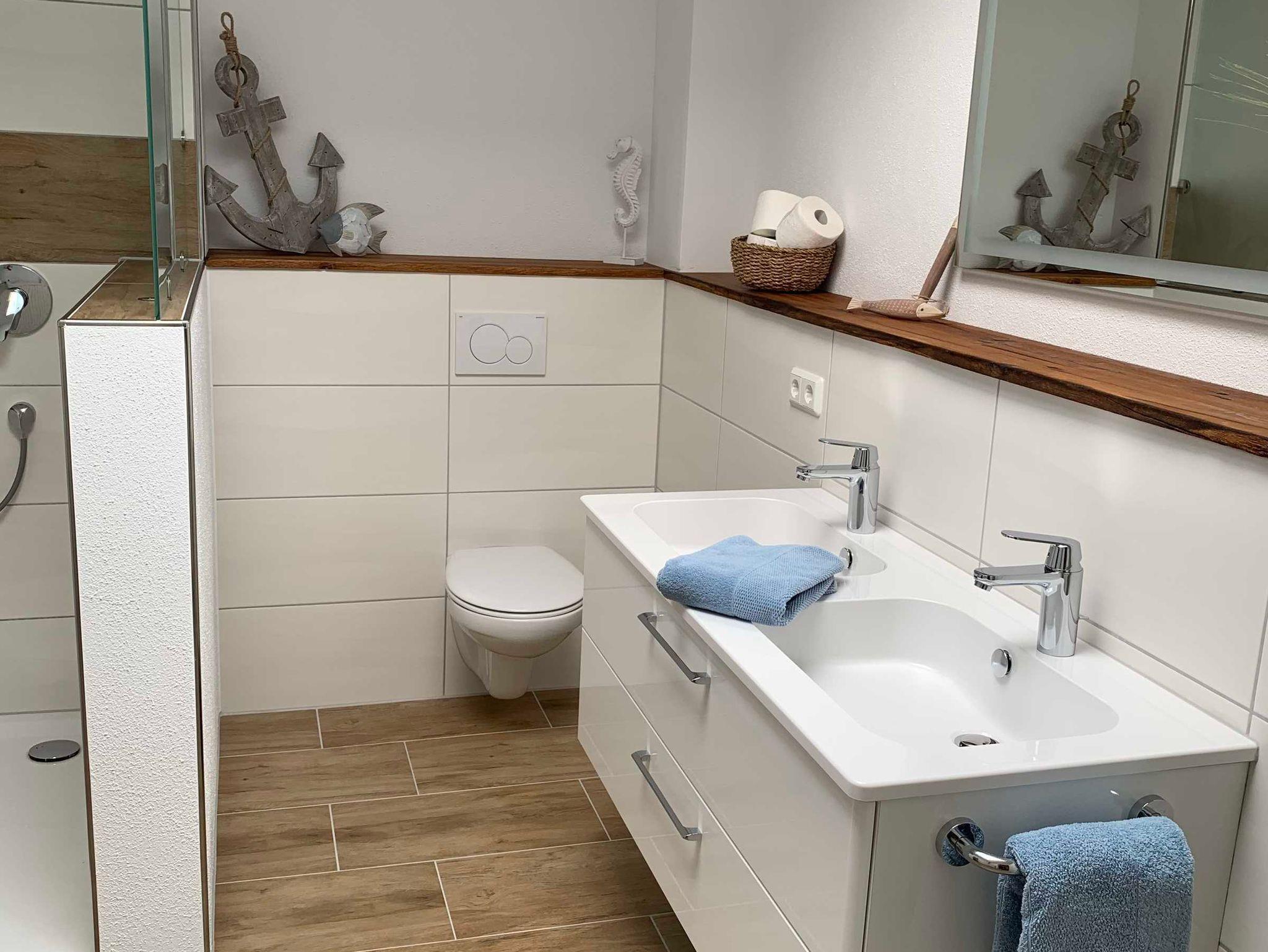 einem Flachbild-Sat-TV, sowie ein eigenes Bad mit DU-WC und einem