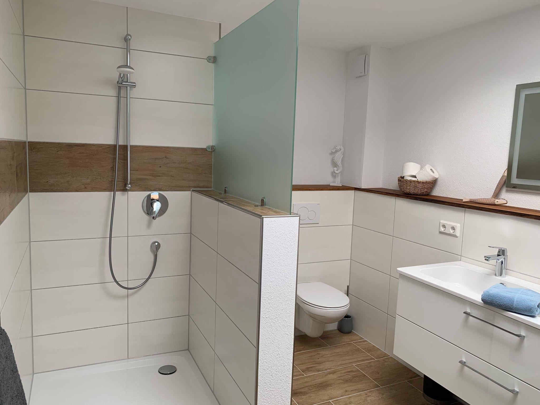Sie können sich ihre Mahlzeiten, in der voll ausgestatteten Küche mit Kochfeld, Ofen, Geschirrspüler, Kaffeemaschine, Toaster, Milchaufschäumer, Wasser,-u. Eierkocher selbst zubereiten. Die Unterkunft verfügt weiterhin über ein Wohnzimmer mit einem Sofa und einem Flachbild-Sat-TV, sowie ein eigenes Bad mit DU-WC und einem Haartrockner. Im Schlafzimmer steht Ihnen ein großes Doppelbett, ein offenes Kleiderschranksystem und ein Flachbildschirm-Sat-TV zur Verfügung.