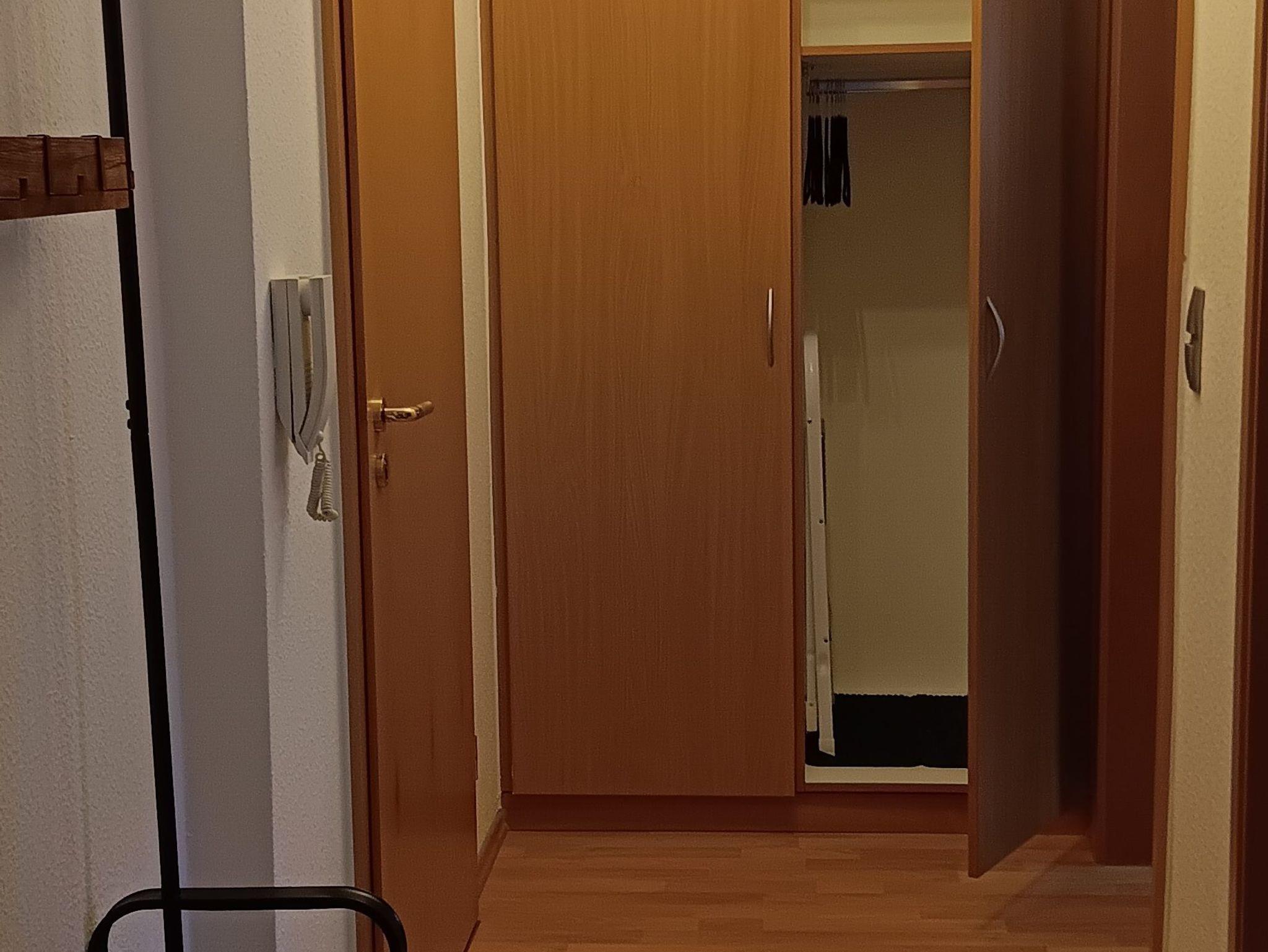 Im Flur der Wohnung finden Sie eine Garderobe mit großem Spiegel sowie einen großen Einbaukleiderschrank.