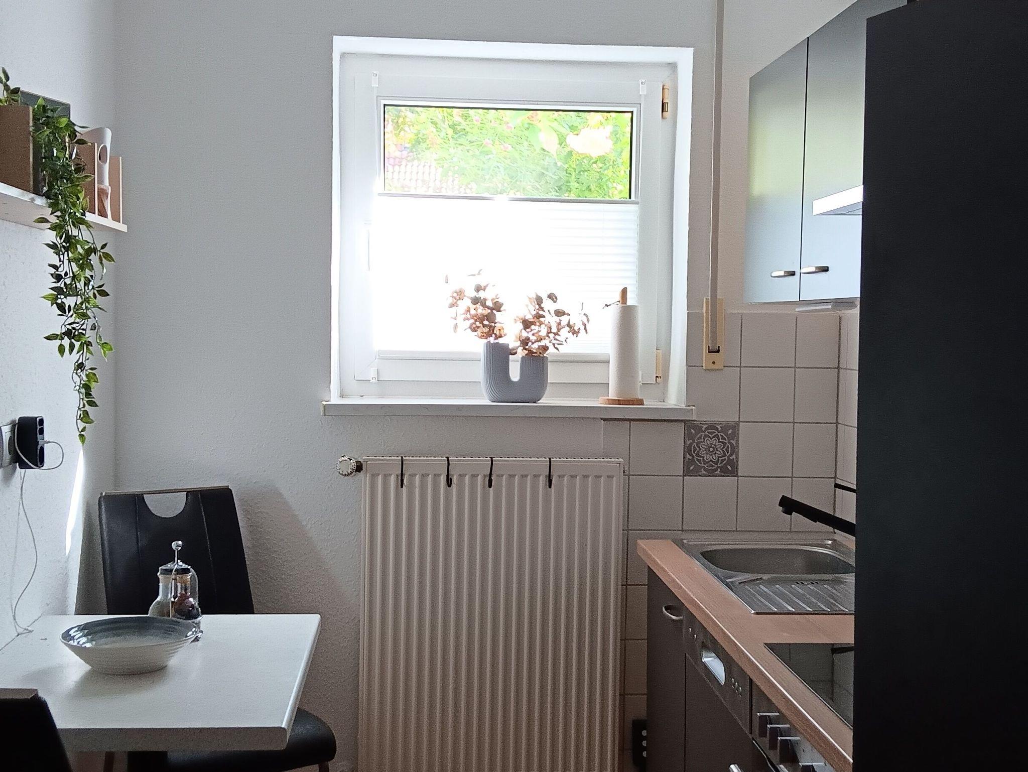Die Ferienwohnung besteht aus einem kombiniertem Wohn-/Schlafraum, einer voll ausgestatteten Küche und einem modernen Duschbad. Sie verfügt über WLAN.