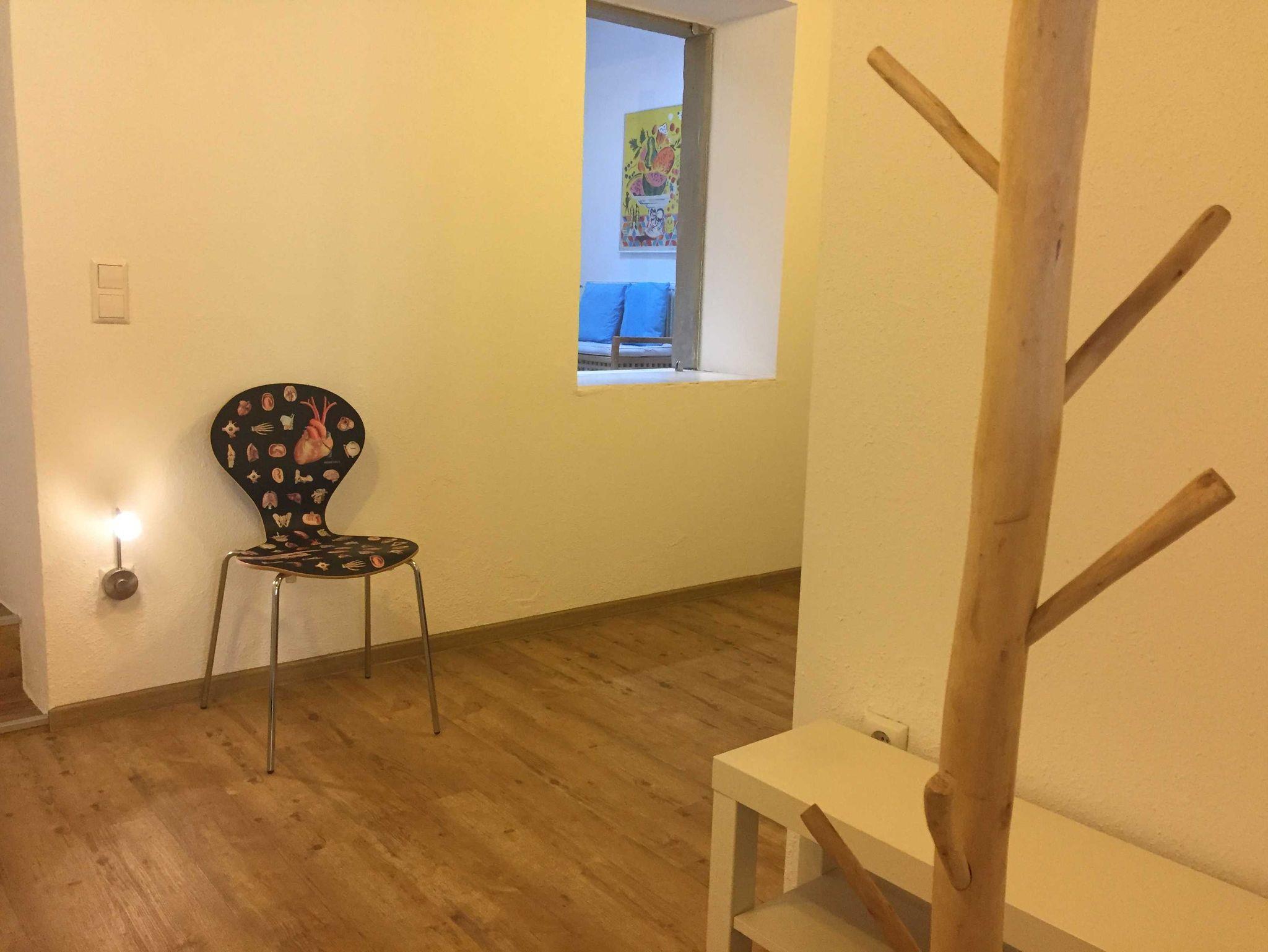 Die Wohnung im Hochparterre (55qm) des Stadthauses bietet einen modernen Loft-Stil und einen großzügigen Wohnbereich mit Eckcouch, (Kabel-)TV, kleine Stereoanlage, freies W-Lan und Schreibplatz. Esstisch mit bequemen Stühlen, Schlafbereich mit Doppelbett (1,40 m, einseitiger Einstieg) ist durch einen Raumteiler getrennt. Die Betten sind bezogen, weitere Decken und Kissen auf Wunsch, Leseecke mit bequemen Sessel.