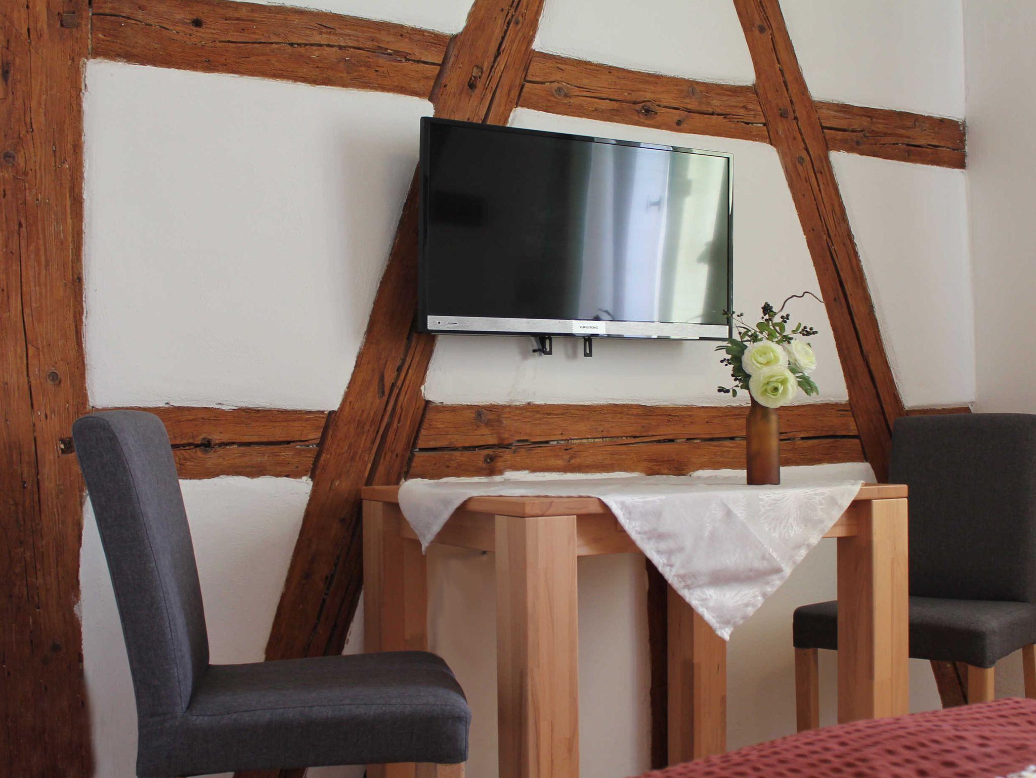 Zusätzlich steht ein 32-Zoll Fernseher und kostenfreies,