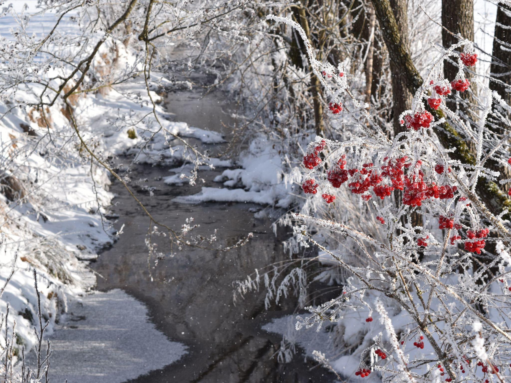 The living space totals 115m², heated by a pellets heating system with central underfloor and wall heating. The spacious living room with a large window wall and a cosy sitting corner with a large flatscreen TV is ideal for cosy TV evenings. The big kitchen-diner has a long wooden table for up to six peope, a little sofa and a pretty Scandinavian stove, perfect for a cosy evening with family or friends. There is an adjoining little roofed balcony with a round wooden table, ideal for having breakfast in the morning sun. The big bedroom has a comfortable double bed (180 x 200cm), a big cupboard and an electric skylight, which allows plenty of sunlight in during the day and affords a view of the starry sky at night. The two small bedrooms each have a comfortable bed (90 x 200cm) and a cupboard with ample storage space, for children or adults. The bathroom is fitted with both a large corner bath and a massage shower, as well as a toilet and two washbasins with a large mirror. There is a separate toilet with a washbasin. A highchair can be provided on request. The house is non-smoking.
