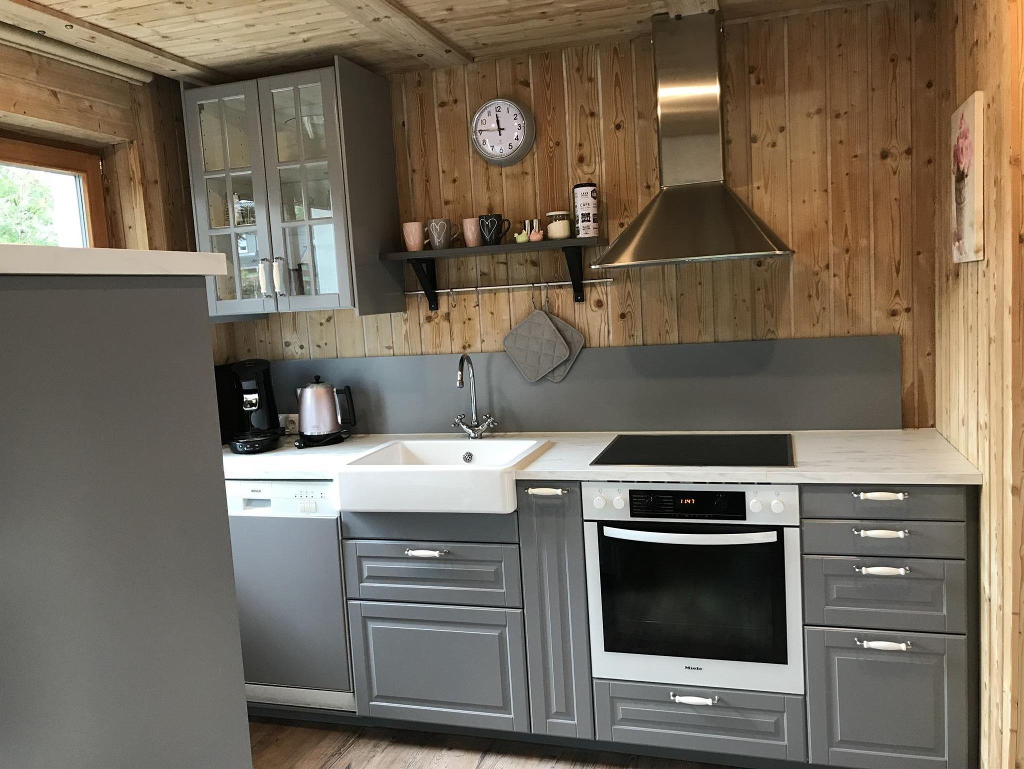 • Gemütliche Sitzecke mit großem Tisch und Separate Küche mit Einbauküche, Backofen, Spülmaschine, Wassersprudler, Mikrowelle und einem Kühlschrank