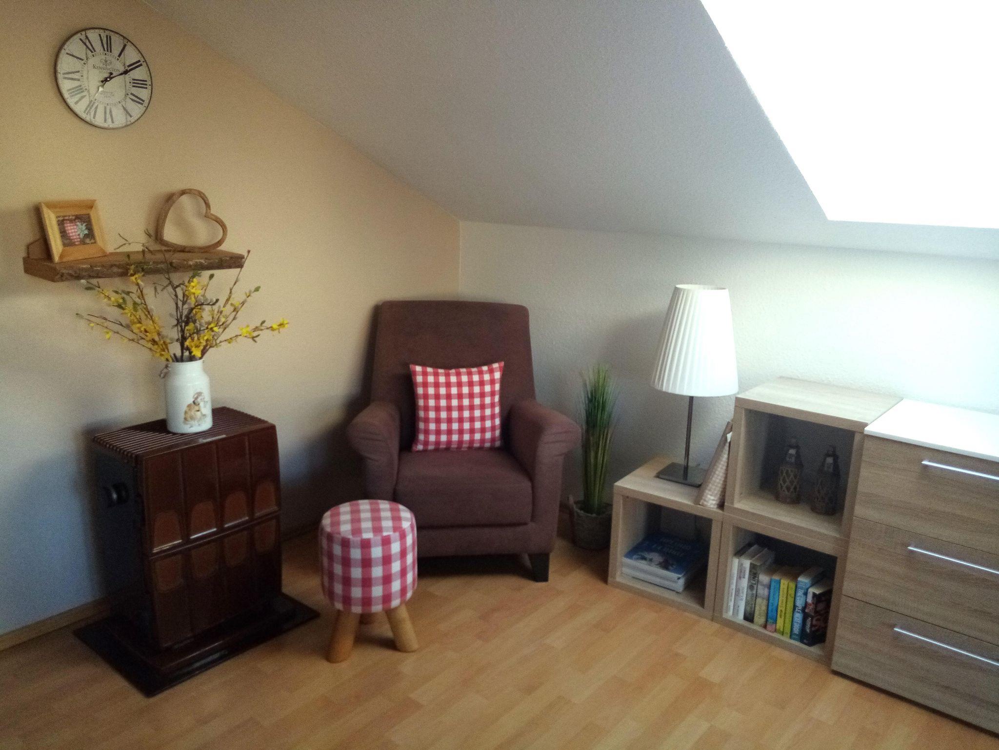 Gemütlich und hochwertig möblierte Nichtraucher-Ferienwohnung für 2 Personen im Dachgeschoß (mit gemütlichen Dachschrägen) unseres Hauses in Bad Wurzach-Ortsteil Arnach, Möbilierung im modernen Landhausstil mit viel Liebe zum Detail.
