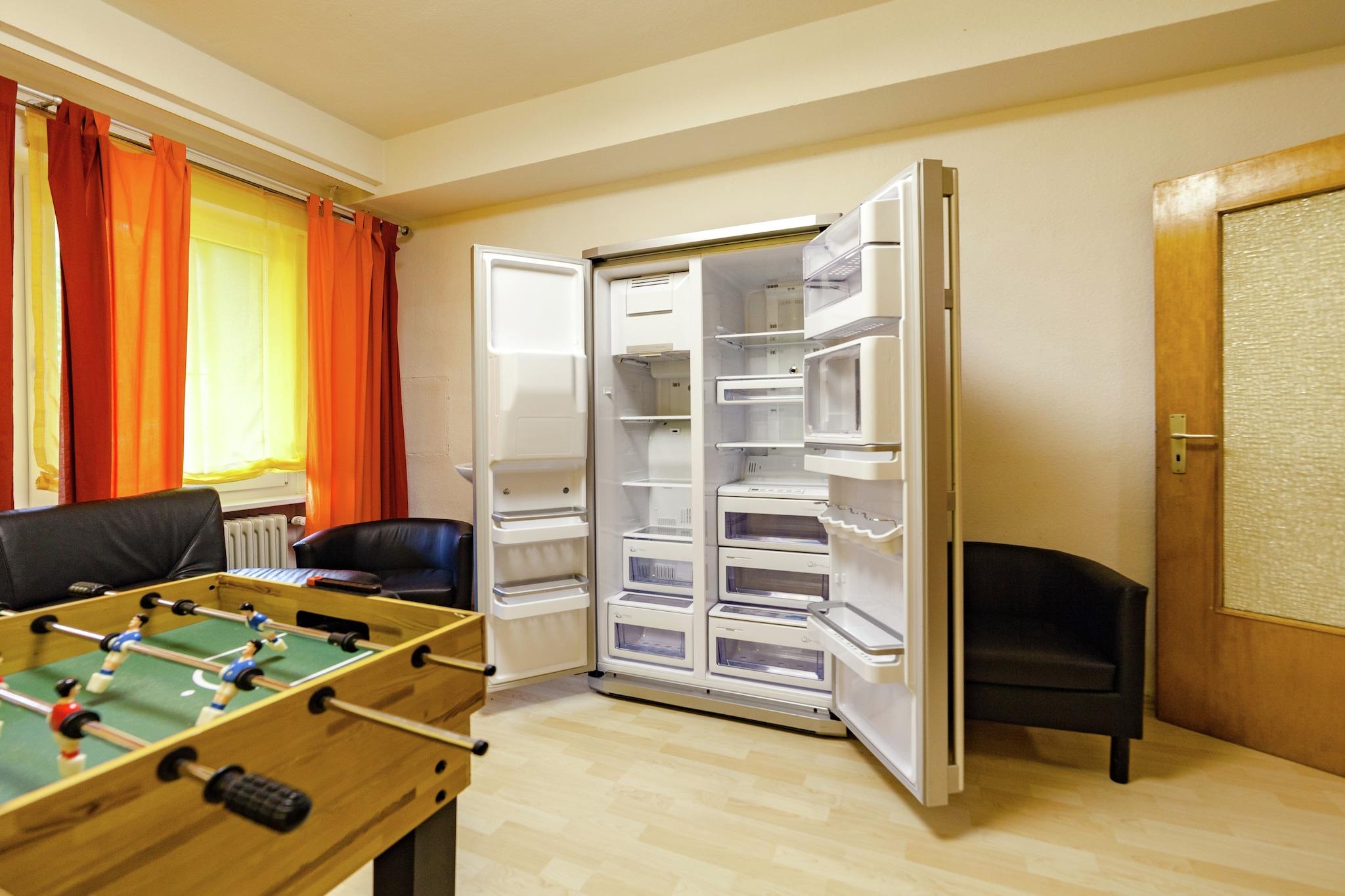 Dette rummelige feriehus i Wenzigerode ligger nær den smukke nationalpark Kellerwald-Edersee, direkte i skoven, og har komfortabel plads til op til 30 gæster med sine 11 soveværelser. Det er derfor ideelt til store grupper eller flere familier med børn. Du kan også medbringe op til 5 hunde gratis; ejendommen er fuldt indhegnet. Nyd den private have til afslappende stunder udendørs og benyt dig af de mange vandrestier i det omkringliggende område. Udforsk lokale attraktioner såsom Löwenstein Slot, Nationalparkcentret og Bad Zwesten Observatorium og Planetariet. Den charmerende by Bad Wildungen ligger kun 5 km væk. Der ligger restauranter 300 m væk, og et supermarked ligger 6 km væk. En nærliggende sø, 10 km væk, er perfekt til en dejlig dagstur. Huset har centralvarme og en rummelig opholdsstue. Bordtennis og bordfodbold sørger for underholdning. Barnesenge og højstole er tilgængelige efter anmodning. To balkoner tilbyder en betagende udsigt og inviterer dig til at slappe af og nyde aftenen. Højdepunkter inkluderet: Alle energiomkostninger er baseret på forbrug Wi-Fi Op til 5 hunde tilladt