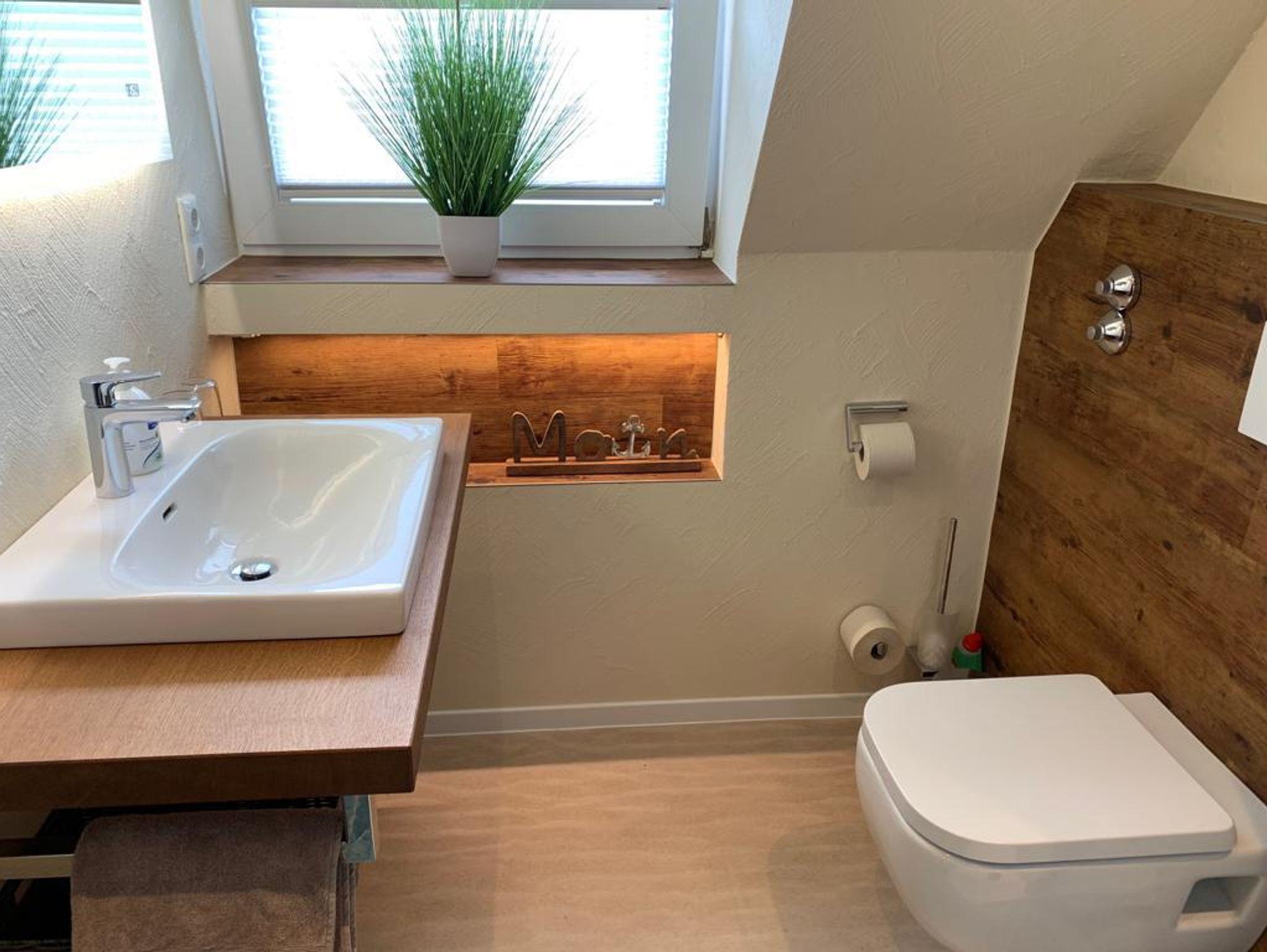 Morgens ein gemütliches Frühstück, Mittags ein kleiner Salat von Ihnen zubereitet in der komplett ausgestatteten Küche und Abends vielleicht ein entspanntes Abendessen in unserem Restaurant „Der Ahrenshof“ 350 m entfernt (bitte unbedingt reservieren Tel: 04403-4711). Später lassen sie den Abend bei einem Glas Wein in Ihrer gemütlichen Sofaecke ausklingen. Unsere exklusiven Boxspringbetten garantieren Ihnen danach einen erholsamen Schlaf. Hat sie das Badezimmer überrascht?