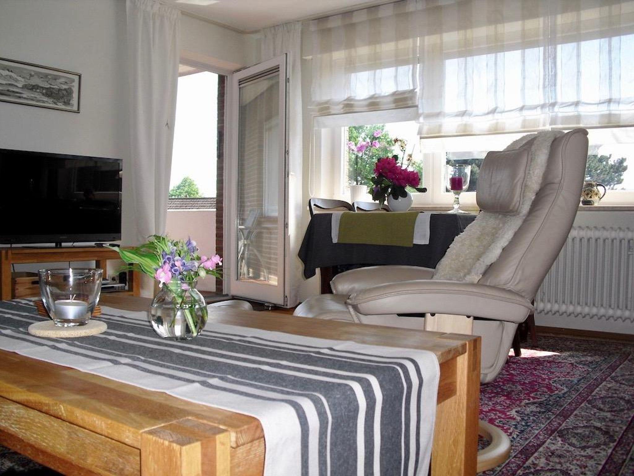 Komfort wie zu Hause bieten Relax-Sessel, gemütliche Couchecke, großer Flachbild-Fernseher, großer Esstisch, kleiner überdachter Südbalkon, Doppelbett mit 2 Matratzen je 1x2m und 2-seitig verstellbarem Lattenrost, großer Kleiderschrank mit ausreichend Stauraum, Rolläden zum Verdunkeln, Bad mit Badewanne und Dusche sowie Fenster, gut ausgestattete hochwertige und geräumige Einbauküche mit Sitzecke, Herd mit Ceranfeld und Backofen, kleine Abstellkammer für Koffer .....