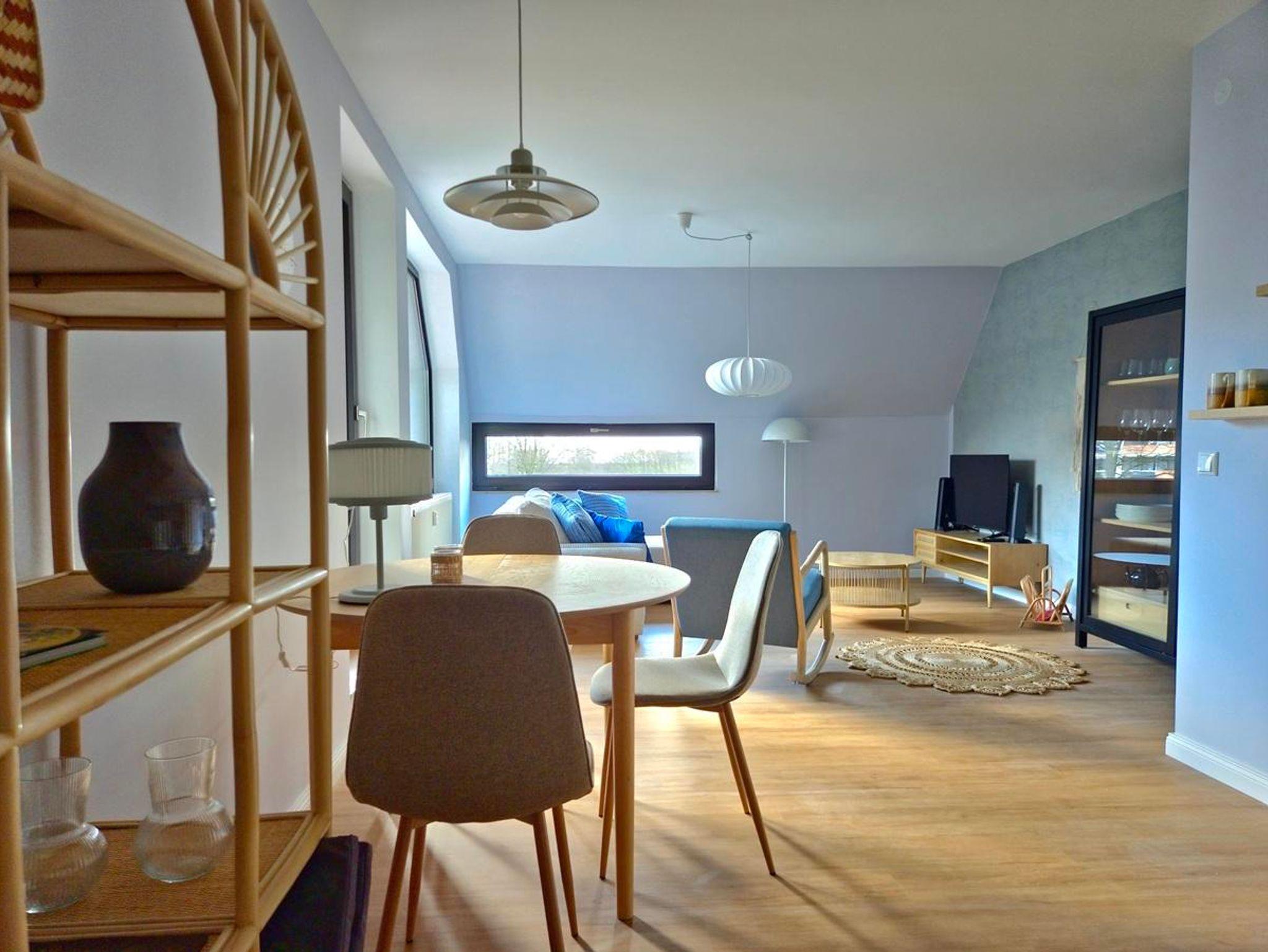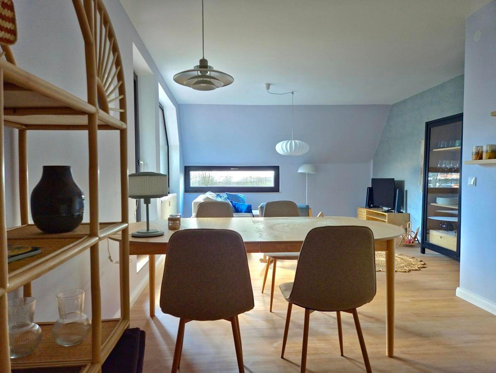 In den Hügelbauten von Bad Zwischenahn befindet sich die stilvolle Ferienwohnung Stella mit maritimen Flair. Die zentrale Lage ermöglicht es Ihnen, die Innenstadt oder die grüne Umgebung über einen idyllischen Radweg schnell zu erreichen. Die Wohnung im ersten Obergeschoss ist über Treppenhaus oder Fahrstuhl erreichbar und wurde 2025 eingerichtet. Vom Wohn- und Schlafzimmer aus haben Sie einen tollen Blick auf das Bad Zwischenahner Meer. Die Küche ist mit hochwertigen Kochutensilien und Elektrogeräten ausgestattet. Der Esstisch kann erweitert werden und bietet so ausreichend Platz für einen Laptop, falls Sie Urlaub und Arbeit verbinden möchten. Im Wohnzimmer gibt es einen Smart-TV mit kostenlosem Netflix-Account, eine kleine Soundbar und ein Schlafsofa. Somit können problemlos zwei Erwachsene und ein Kleinkind Urlaub machen. Das Schlafzimmer ist mit einem großen 1,8x2m Bett und einem schönen Garderobenspiegel ausgestattet. Die kostenlose Nutzung von Waschmaschine und Trockner ist selbstverständlich. Für Kaffeeliebhaber stehen ein Kaffeevollautomat, eine Mokka-Kanne oder eine klassische Kaffeemaschine zur Verfügung.