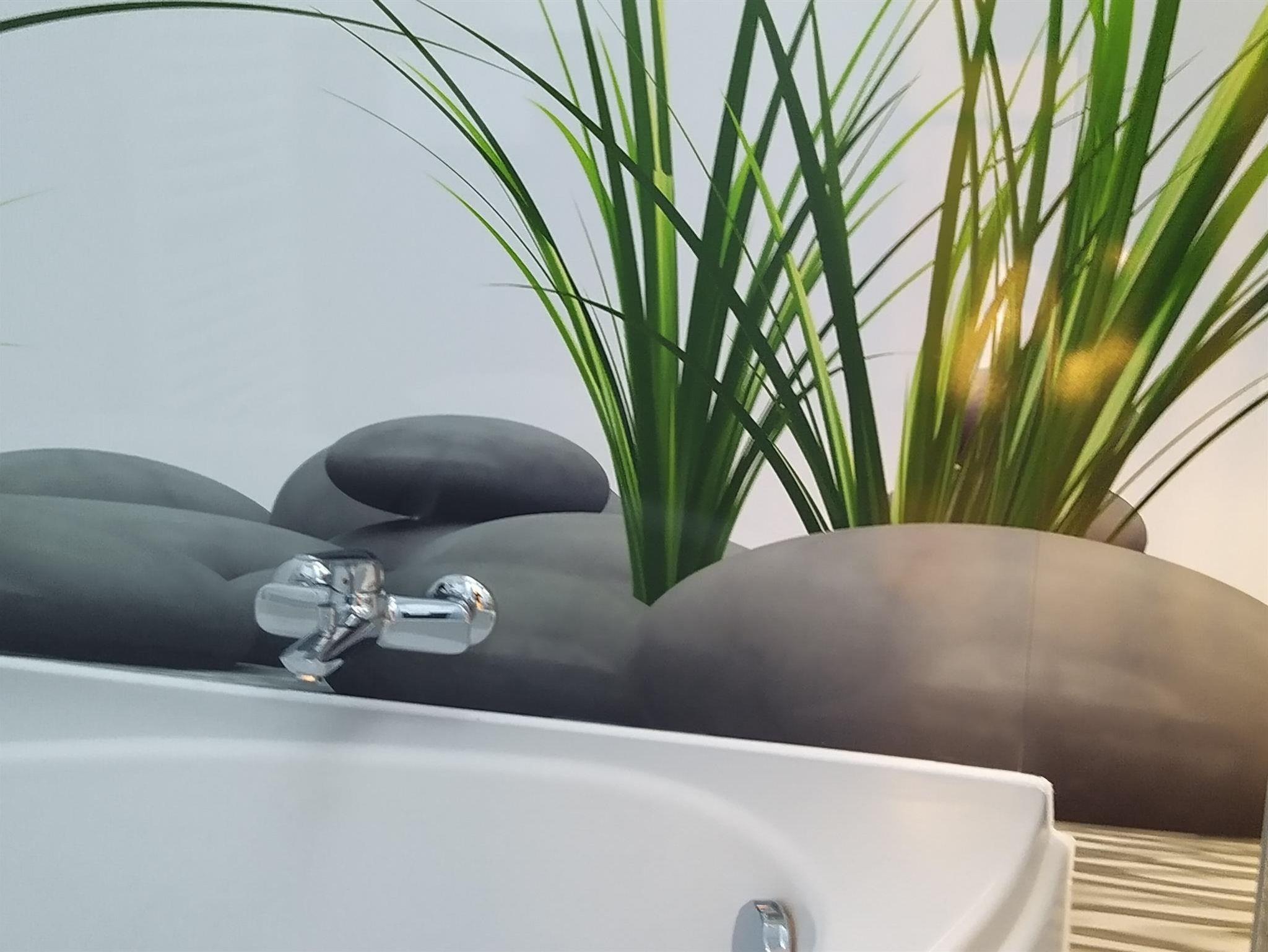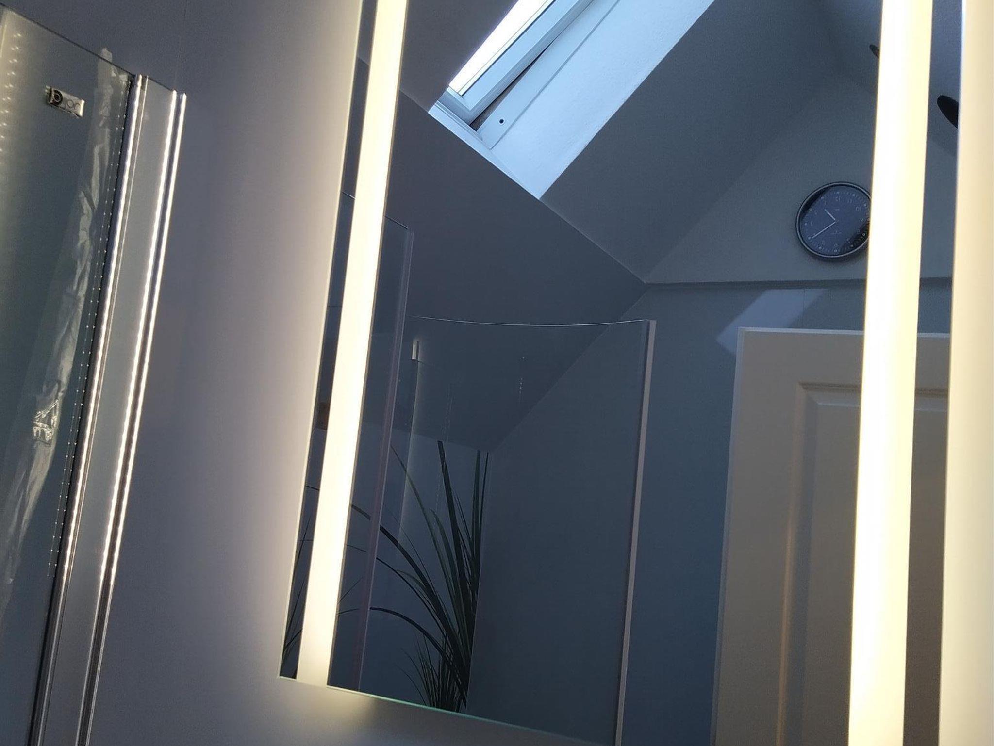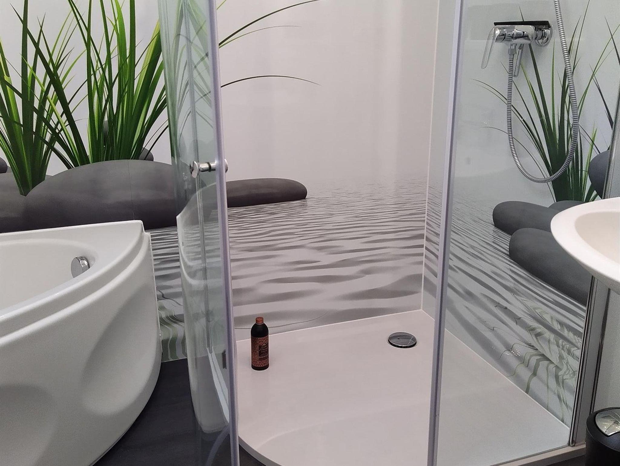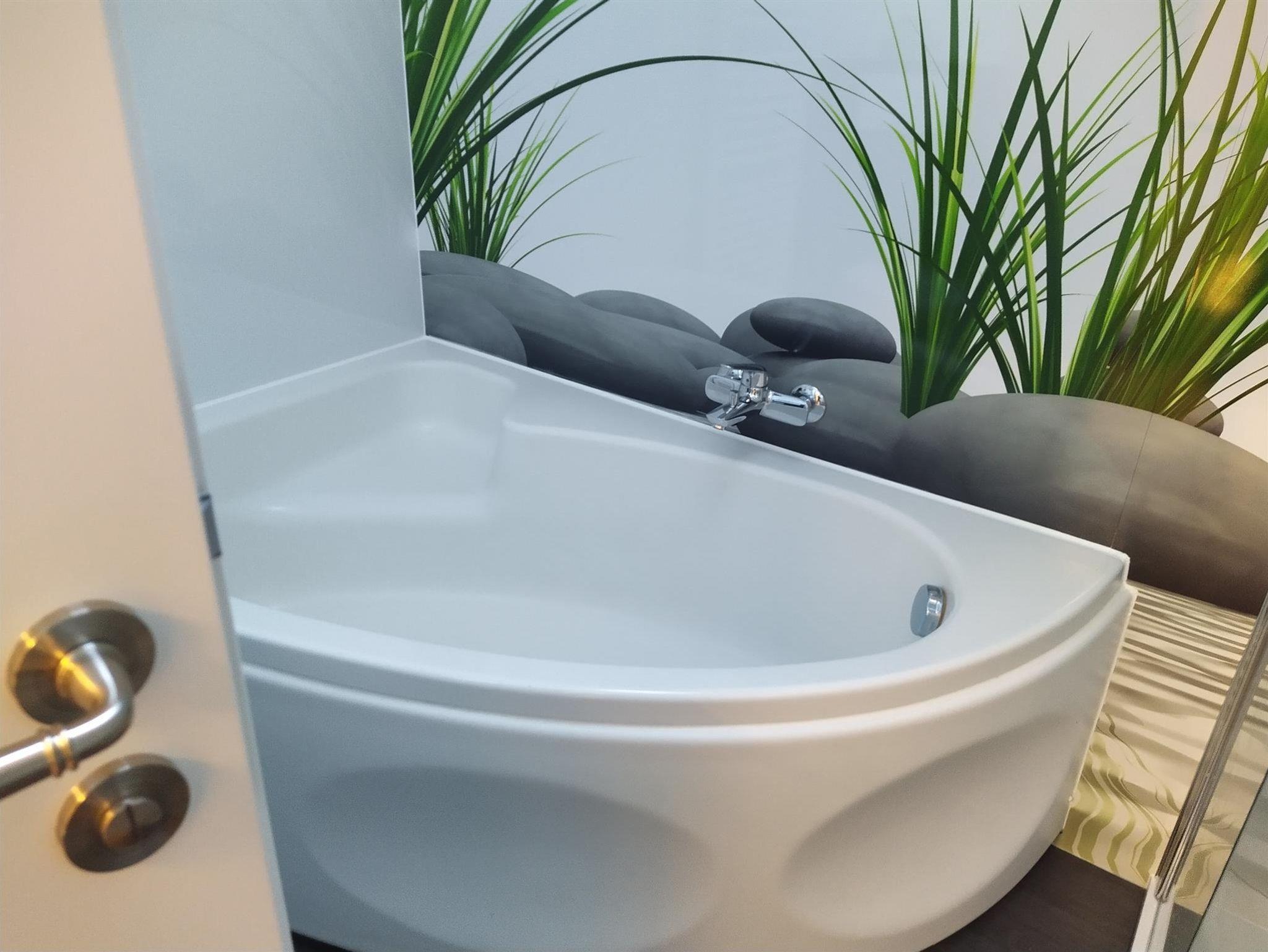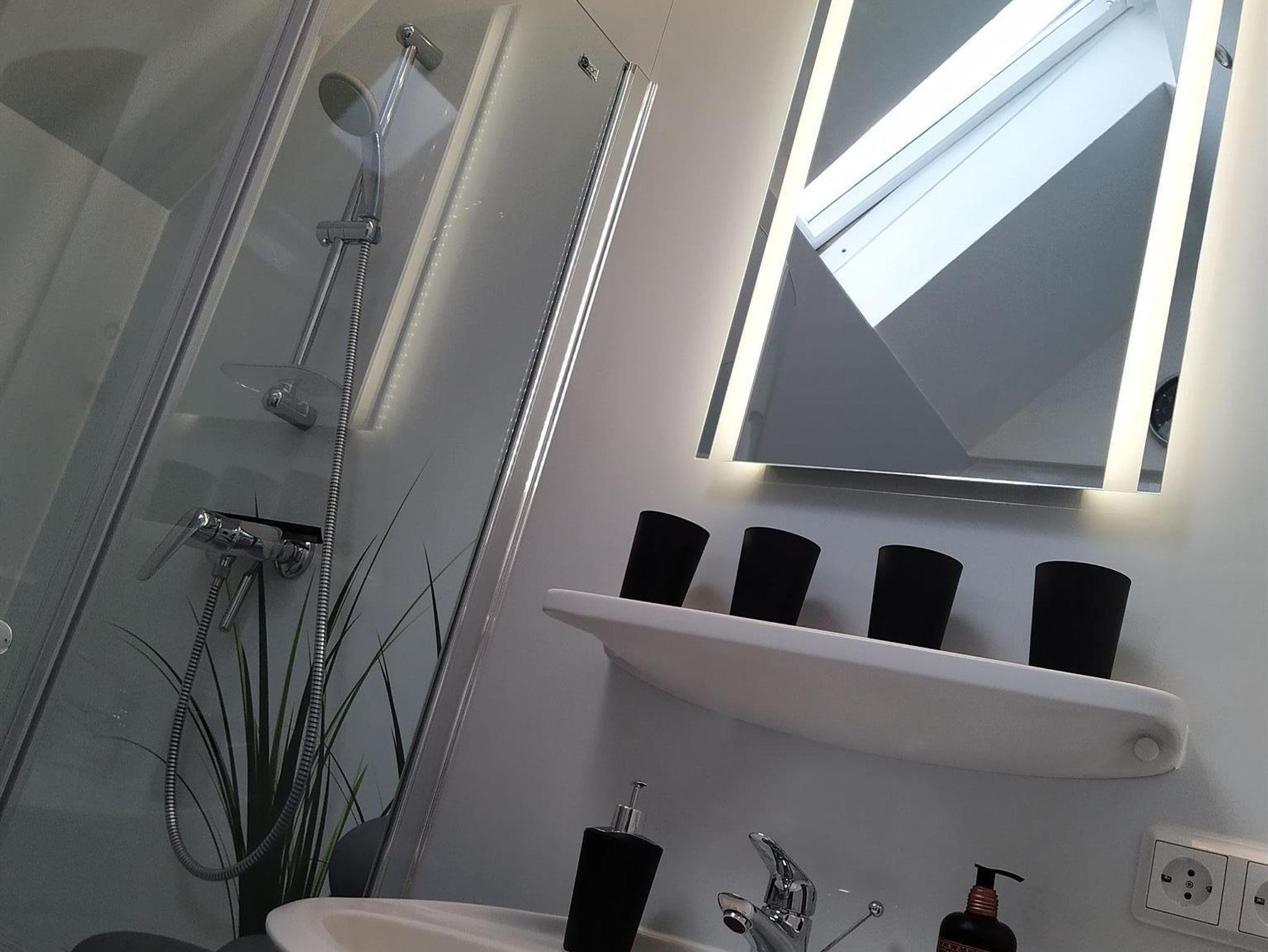 - 1 Badezimmer mit WC, Badewanne und barrierefreier Dusche, zudem programmierbare Lichtvariationen