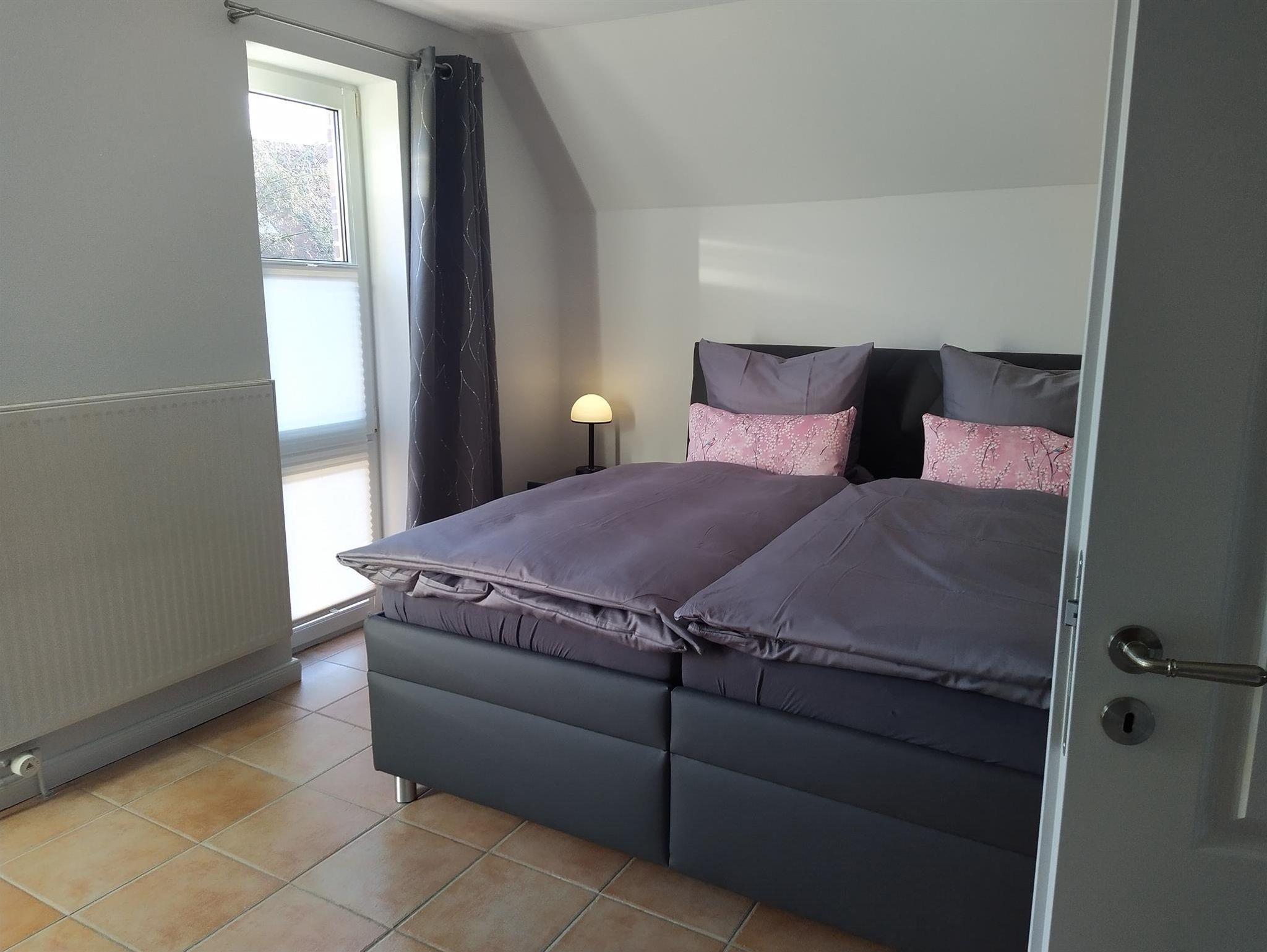- 2 Schlafzimmer mit jeweils einem Doppelbett mit motorisch verstellbaren Lattenrosten, Komfortmatratzen und Federbetten
