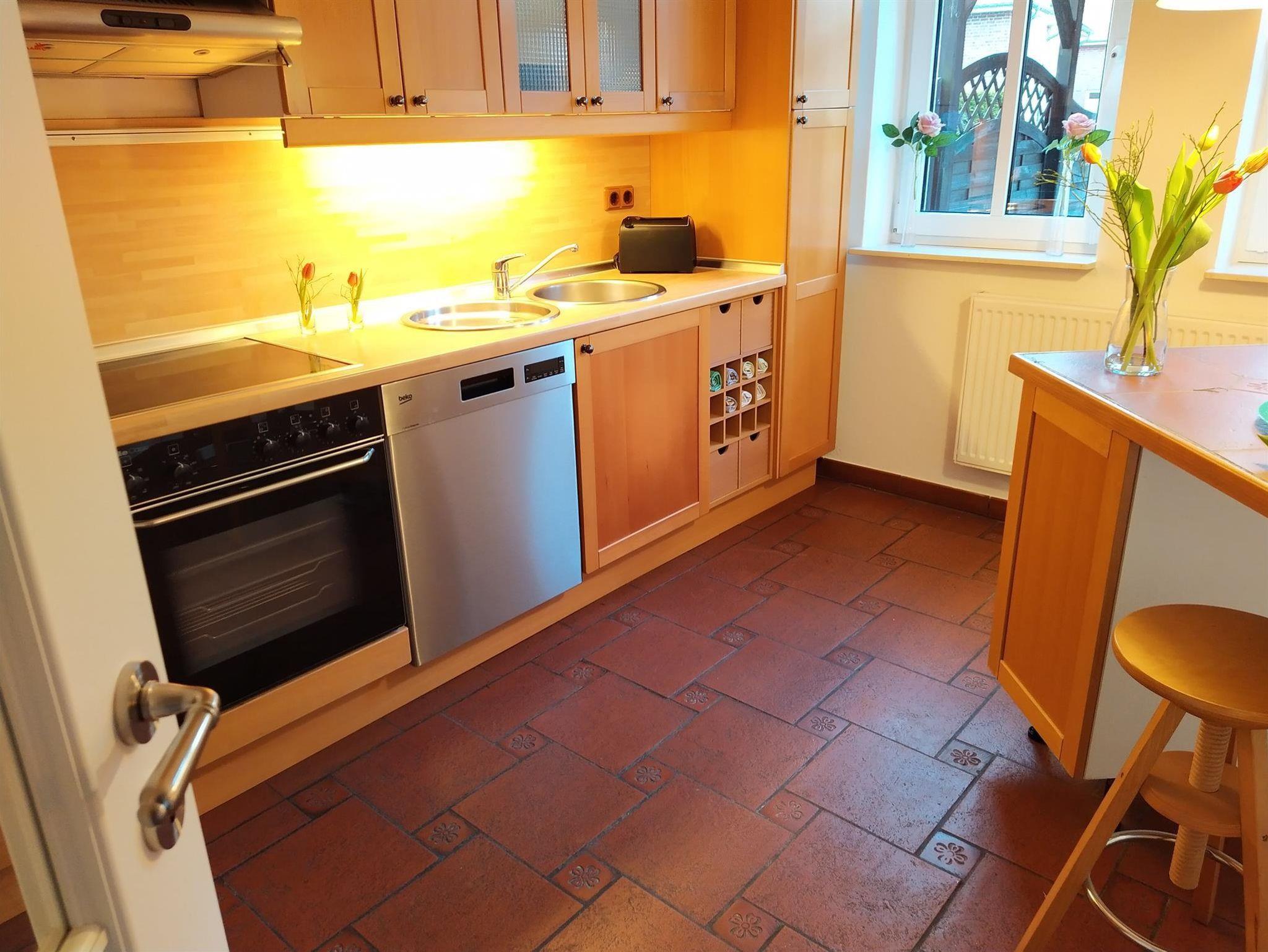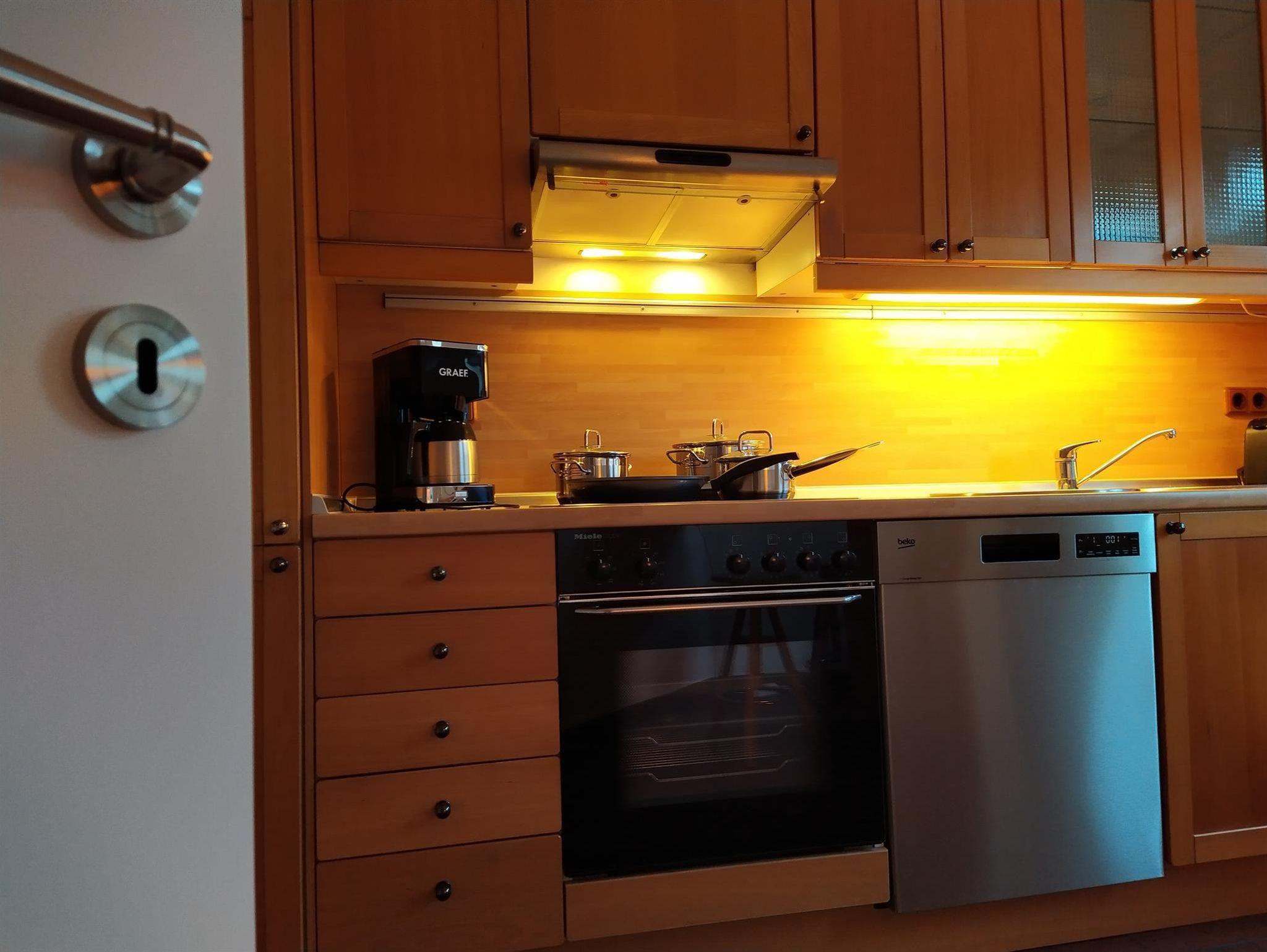 - 1 Küche mit Frühstückstresen und kompletter Küchenzeile mit Geschirrspüler.