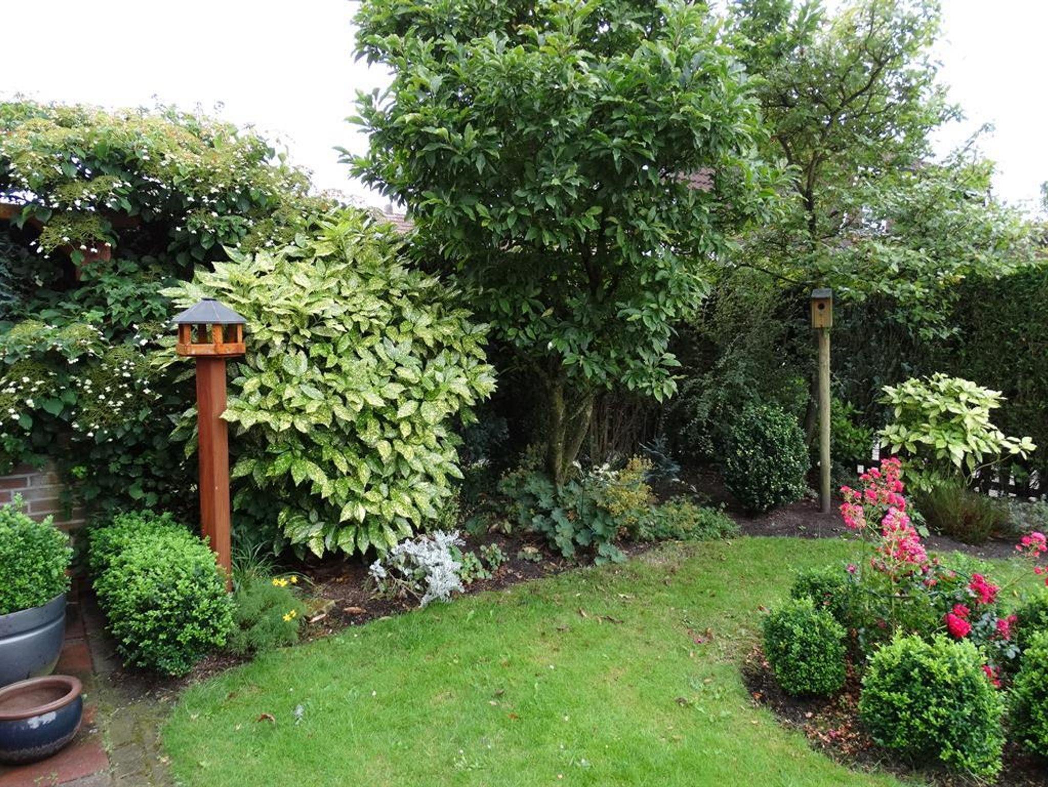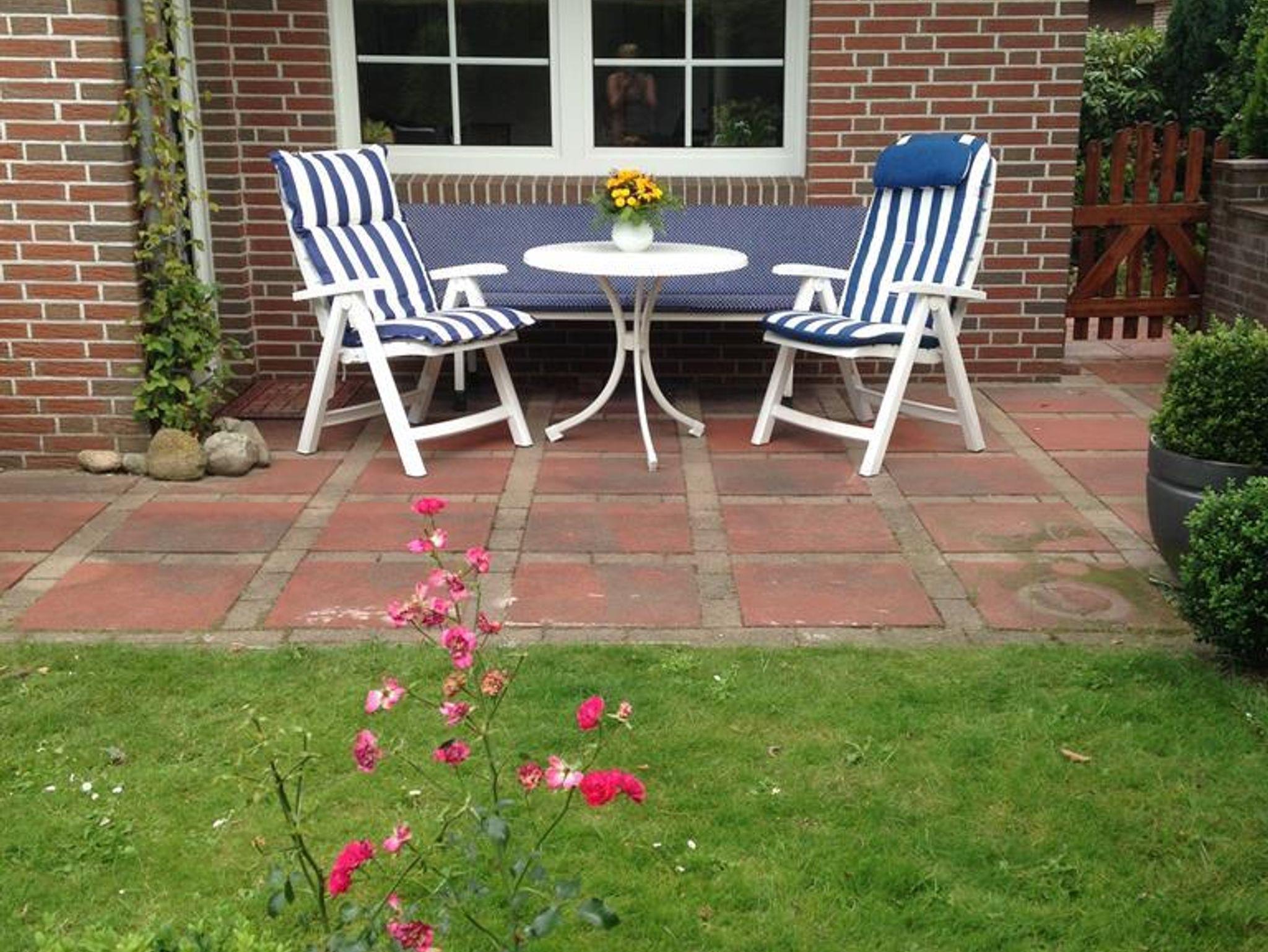 Die mit Gartenmöbeln ausgestattete Terrasse und den Garten erreichen Sie über das Wohnzimmer.