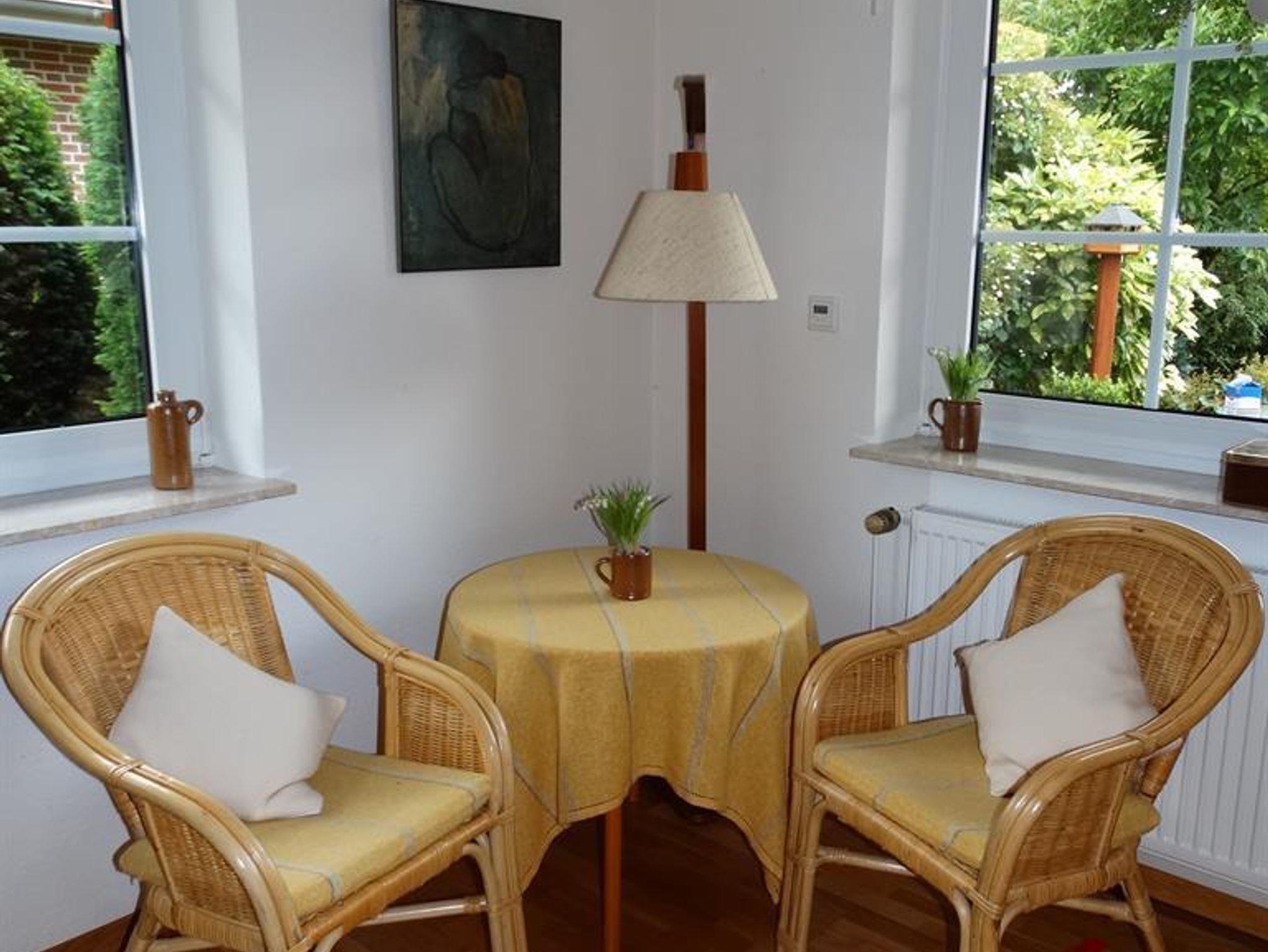Die 87qm große, helle Ferienwohnung im Erdgeschoss eines Zweifamilienhauses, verfügt über 2 Schlafzimmer, ein Wohnzimmer, eine gesonderte Essdiele, Küche, Badezimmer und einen Garten mit Terrasse. Sämtliche Fenster haben elektrische Rollläden.