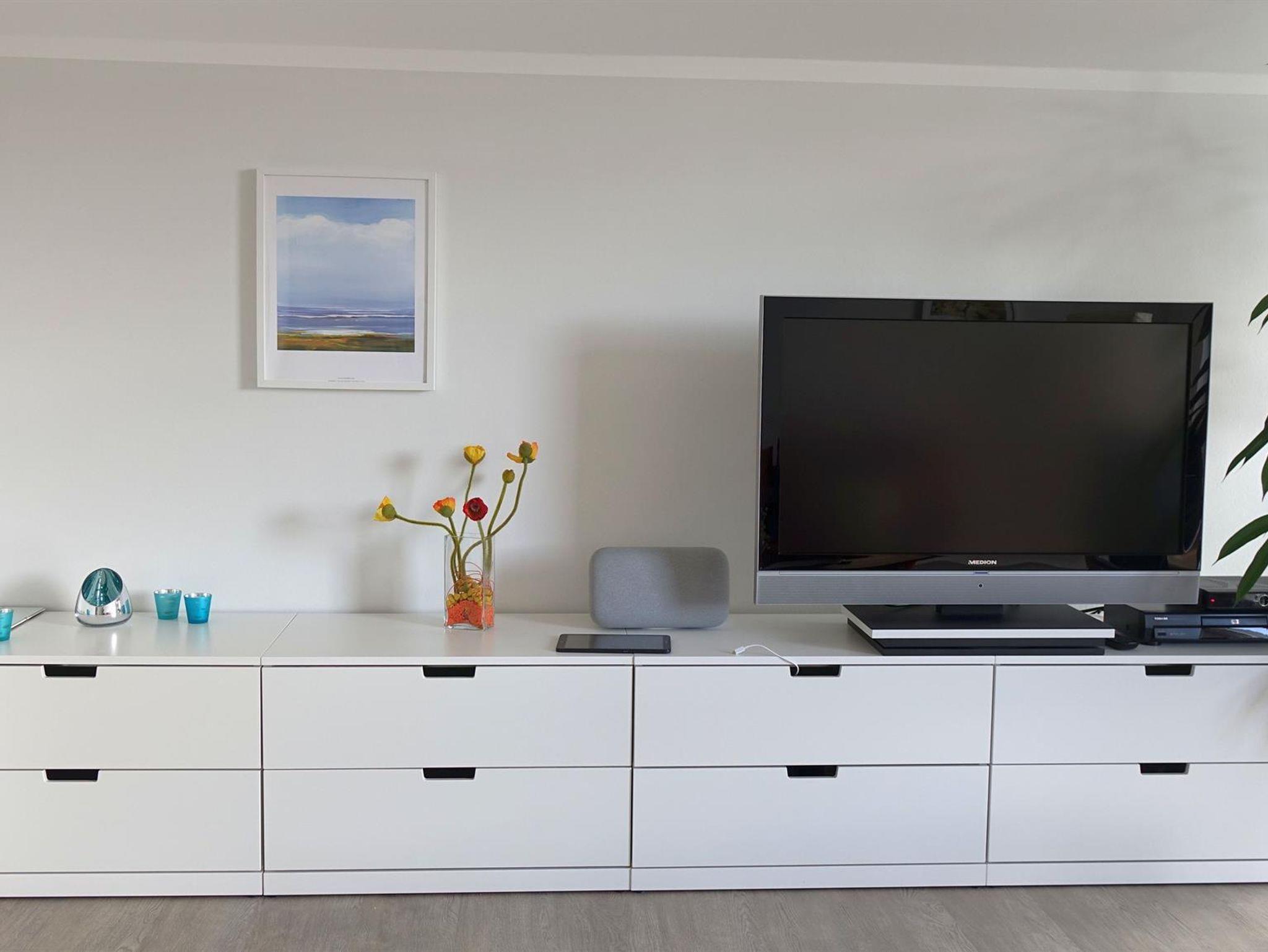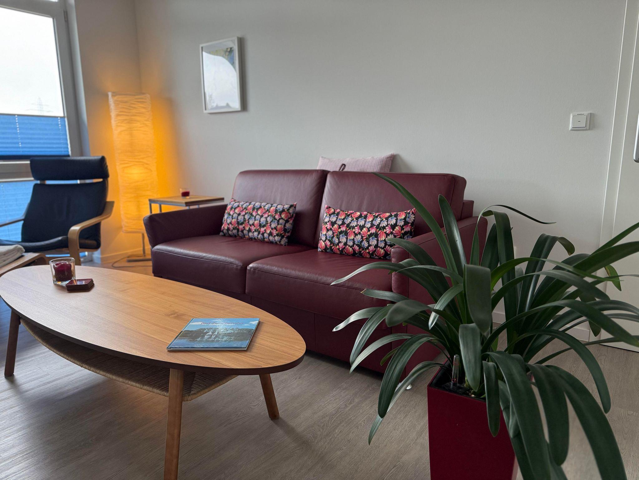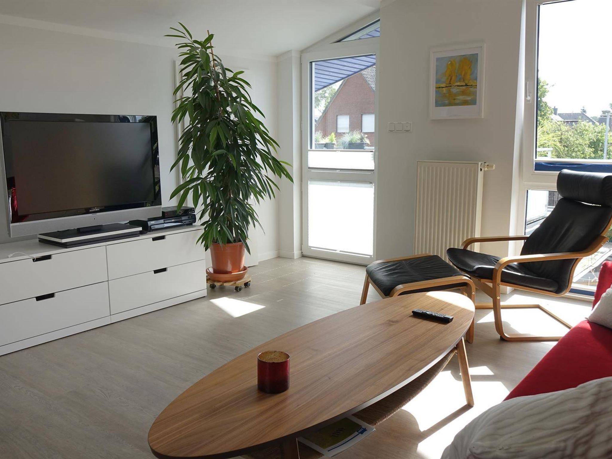 Zwei Zimmer, Küche, Bad und eine Dachterrasse mit Grill. Das Schlafzimmer mit Doppelbett (180 x 200 cm, Allergiker-geeignet mit milbendichtem Matratzenbezug). Hinter dem Schlafzimmer ist eine geräumige Kammer, in der Sie Ihre Koffer abstellen können. Das Sofa im Wohnzimmer lässt sich zu einer Schlafcouch (130 x 200 cm) verwandeln, so dass auch bis zu vier Personen hier übernachten können.